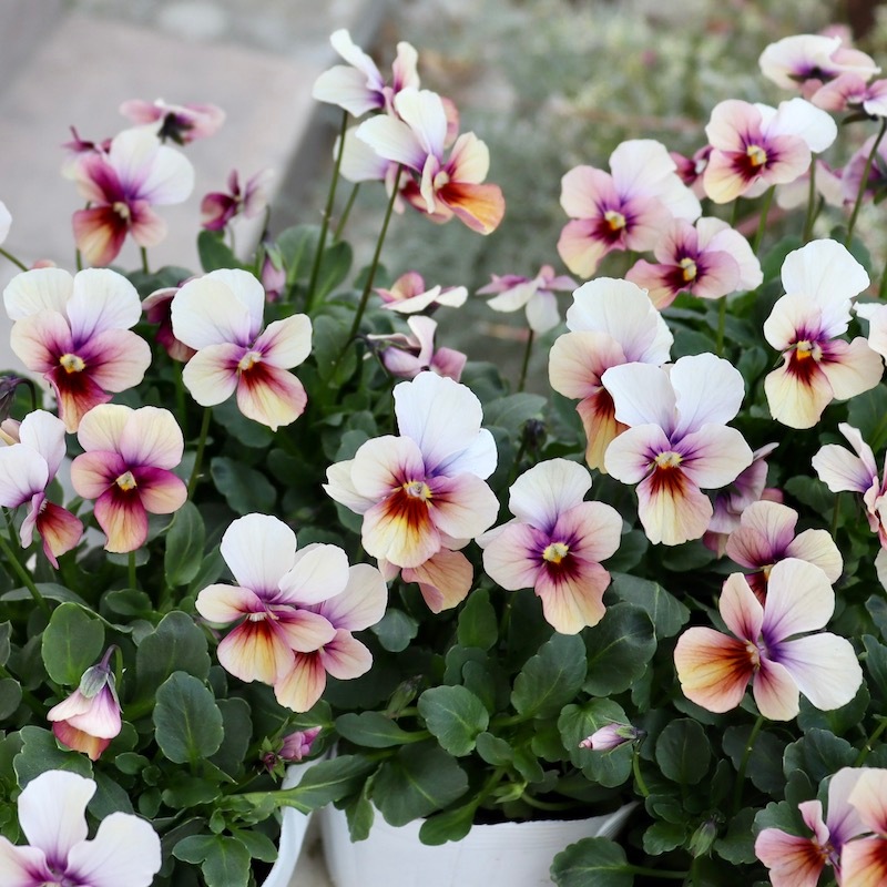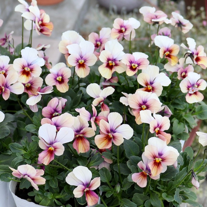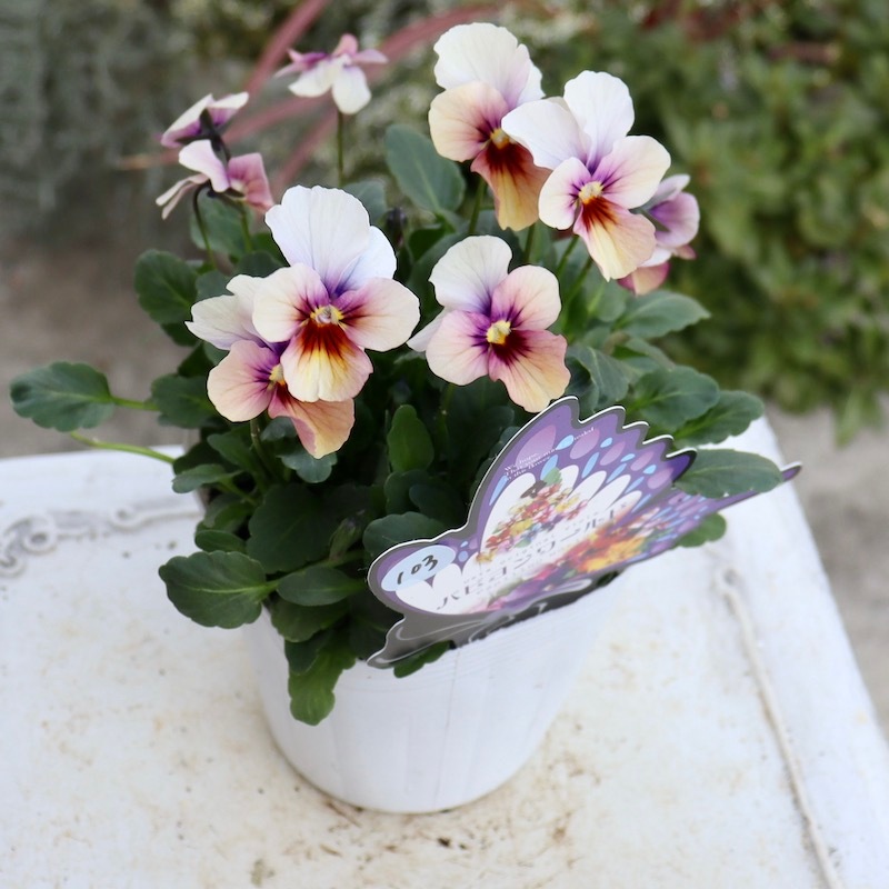 | 1/23 花色を確認・色分けできたものから販売在庫を追加!! なお、例年通り、細かすぎる色分けをしていますので、今後開花が進むと花色が変わってくるものもあります。現在の花色での色分けです。あらかじめご了承ください。 掲載画像は、過年度に当店で撮影したものです。 花色で品番をつけていますので、株のボリュームや開花数は現在のものと異なります。あくまで花色のご参考に。 最新の入荷株の状態は Instagramの動画でご覧頂けます♪ ************************* こんな色の花があるんですね~ と驚かれる素敵な色が豊富に揃うパピヨンワールド☆ しかも乱れにくく、春の美しさもピカイチ。育てて実感する「パピヨンワールド」の威力! 「パピヨンは外せない!!」 と虜になってしまいますよね~(笑) お買い上げ下さったお客様からは、画像よりずっと素敵だった~ 一番欲しい色は買えなかったけれど、他の色も素敵だった~ とのお声を毎年多数頂きます。 どの色も個性があって魅力的♪ 今年もお好みの色を選んでお買い求めいただけるように、花色で選別。風散歩独自のグループ分けをして品番を付けました。 ラベルの上部に手書きしたシールを貼っています。 余りにも色が豊富なため、色分けしての販売は、正直、非常に手間がかかり大変ですが。。。(-_-;) お客様の喜びのお声だけがそのパワーとなっています。 お好みの色を選んで下さいね。 なお、お色に拘りなくお任せで良い方は、お買得な「お色お任せ4株セット」もご用意しました。合わせてご検討くださいね。 この花の説明? 写真があれば、説明はいらないですよね。とにかく素敵すぎる花色のビオラです☆ 花径 約2~3.5cm 高知の植田さんがプロデュースされたビオラ「パピヨンワールド」 色別ラベルなしのアソートでの入荷です。でも、でも、どの色も美しい。 幸せ~♪何て美しいんでしょうね。 グループ分けをしましたが、それでも色幅、個体差があります。 花色というのは気温や日照条件によっても変わります。育てているうちに色の出方が変わることもよくあることです。(それがまた魅力) 所属グループが変わる可能性もあります。(実際に毎年変更があります) 細かいお色の指定はできません。 ご了承ください。・・・・・・・・・・・・・・ 自信を持っておすすめできる苗のみを豊富に取り揃えております。 ・・・・・・・・・・・・・・ ※お届けするのは写真のものと同等品になります。 枝ぶり、蕾・花の数が全く同じものはありませんが、似たようなものです。 植物は日々生長していることをご理解ください。 また、色はできるだけ現物通りに再現する努力はしておりますが、発色はご覧のPC環境によって異なります。 |