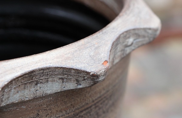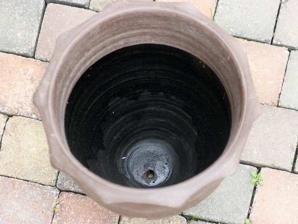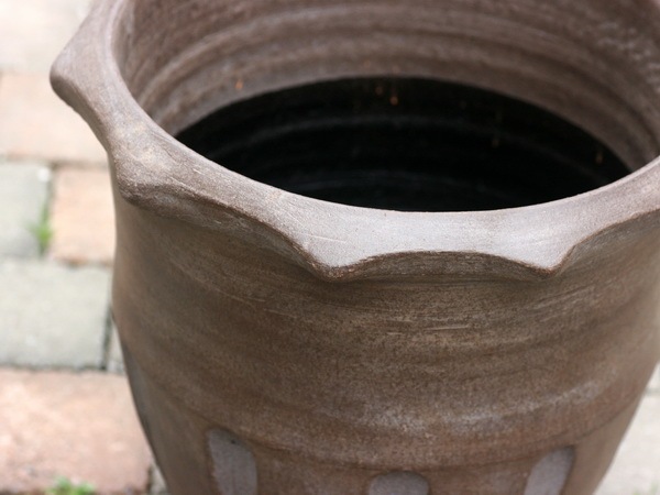 鉢底穴の開いたテラコッタ(素焼き)です。 |
