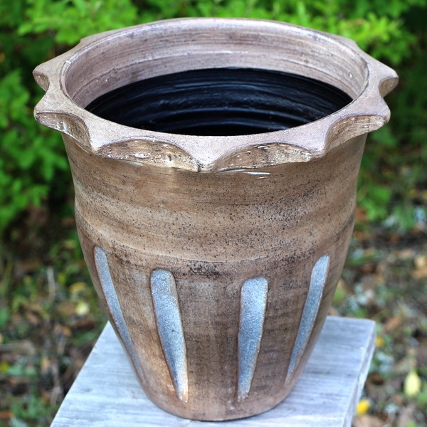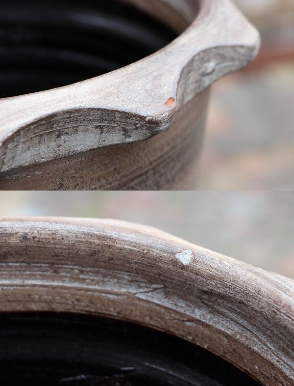 全体の大きさ 直径 約32cm (内径 約26cm) 高さ 約30cm 底穴やふち廻りに特有の焼きヒビが生じている場合もあります。衝撃によるヒビ割れとは異なるりますので、使用上は問題ございません。 |