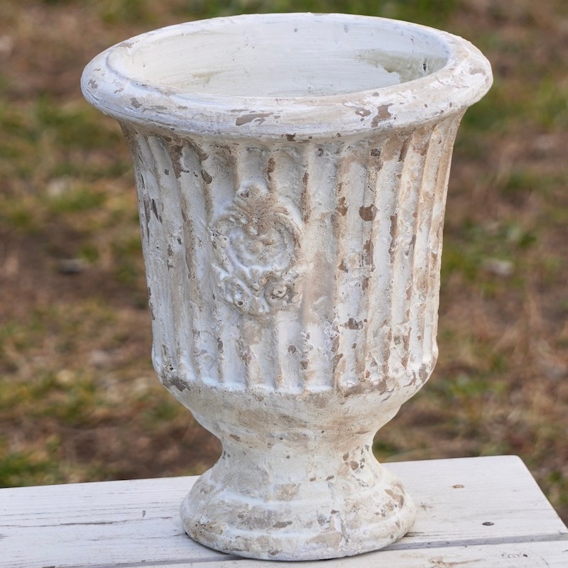 アンティーク風仕上げは、新品の時から使い古したような味があるので、ピカピカでこの鉢だけが浮いてしまうことがなく、いきなりお庭にしっくり馴染んでくれます。