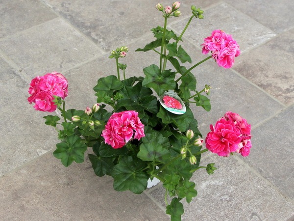 この花は、普通のアイビーゼラニウムと異なり、美しい八重咲き。