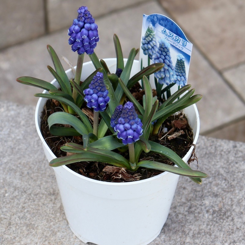 久しぶりにムスカリの芽出し球根の4号鉢物が入荷!!