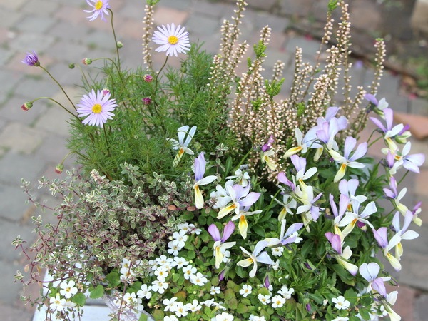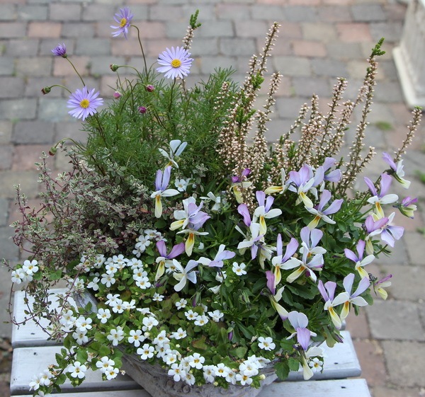 ラベンダーカラーでまとめた大人っぽい寄せ植えです。