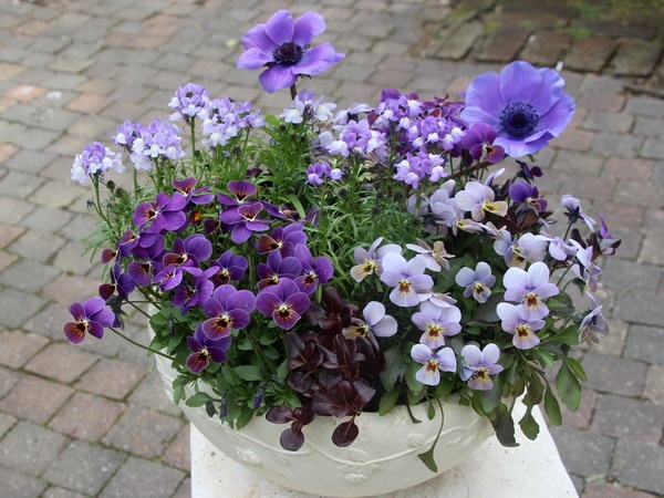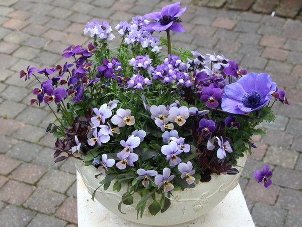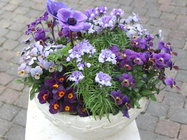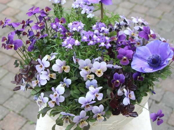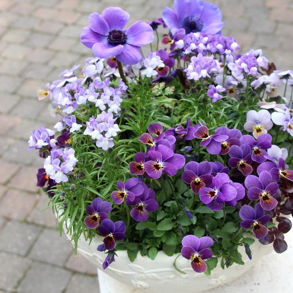 この寄せ植えのテーマはブルー!