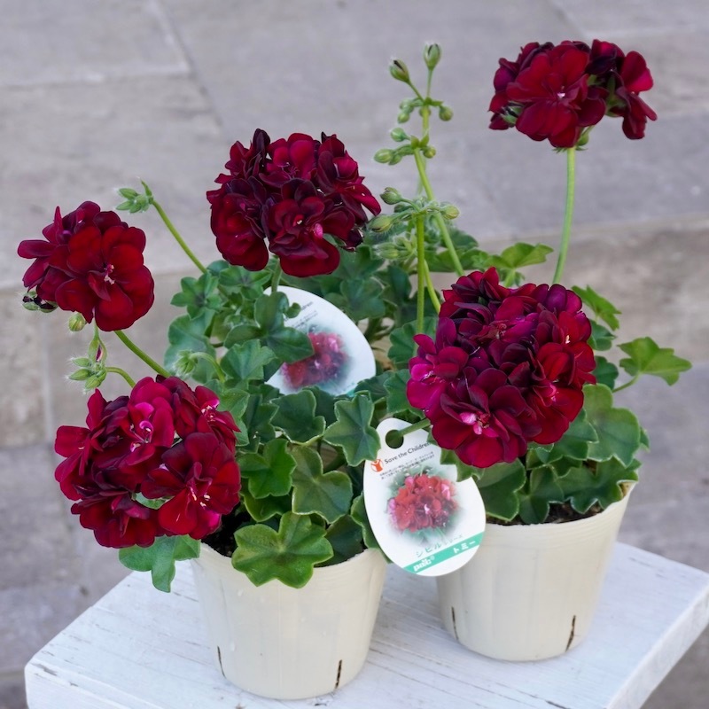 ゴージャスな花と個性的な色が魅力のアイビーゼラニウムです。