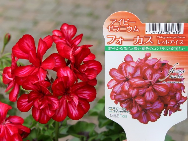 ただ、花も葉もボリュームのある八重咲きのアイビーゼラニウムは、ポット苗での扱いが困難で、なかなか良苗が入荷できません。