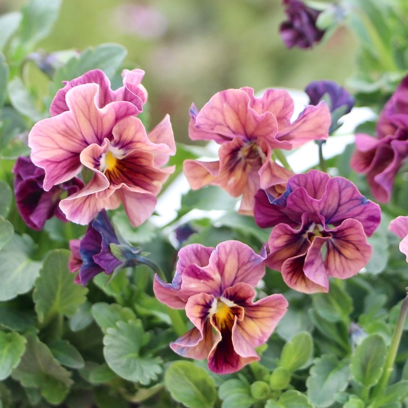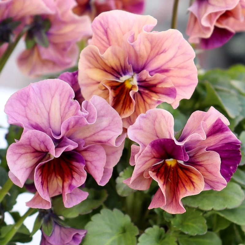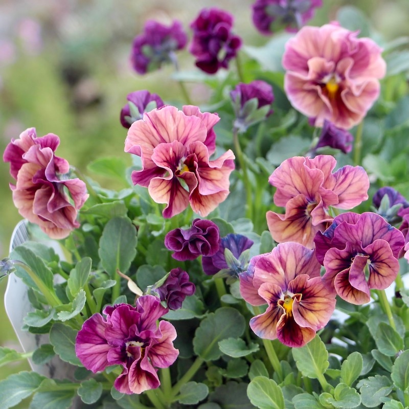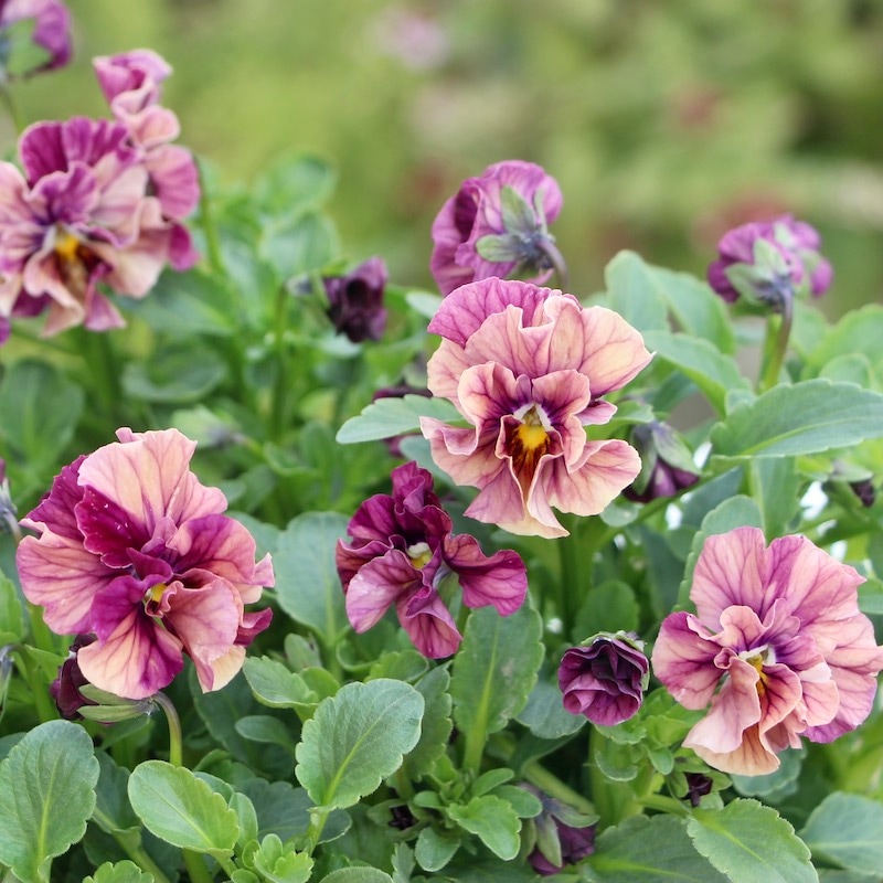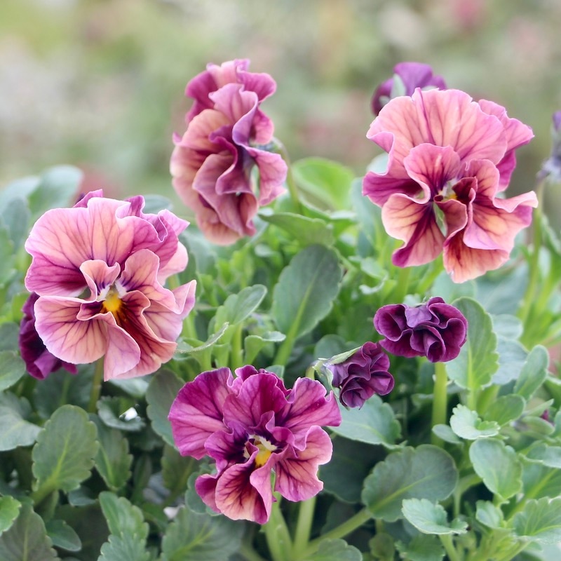 風散歩で扱うビオラの代表選手 「パピヨンワールド」をはじめ、キュートな色、フリフリの数々のパンジービオラを生み出された高知の植田さんのプレミアムな大人気品種です。