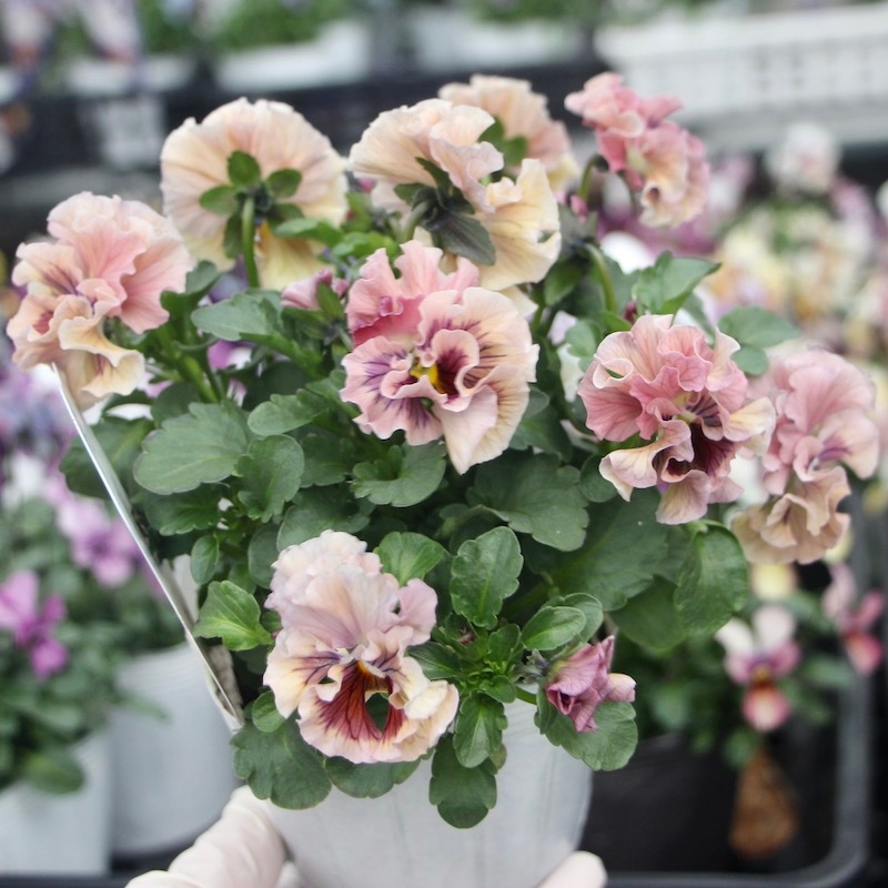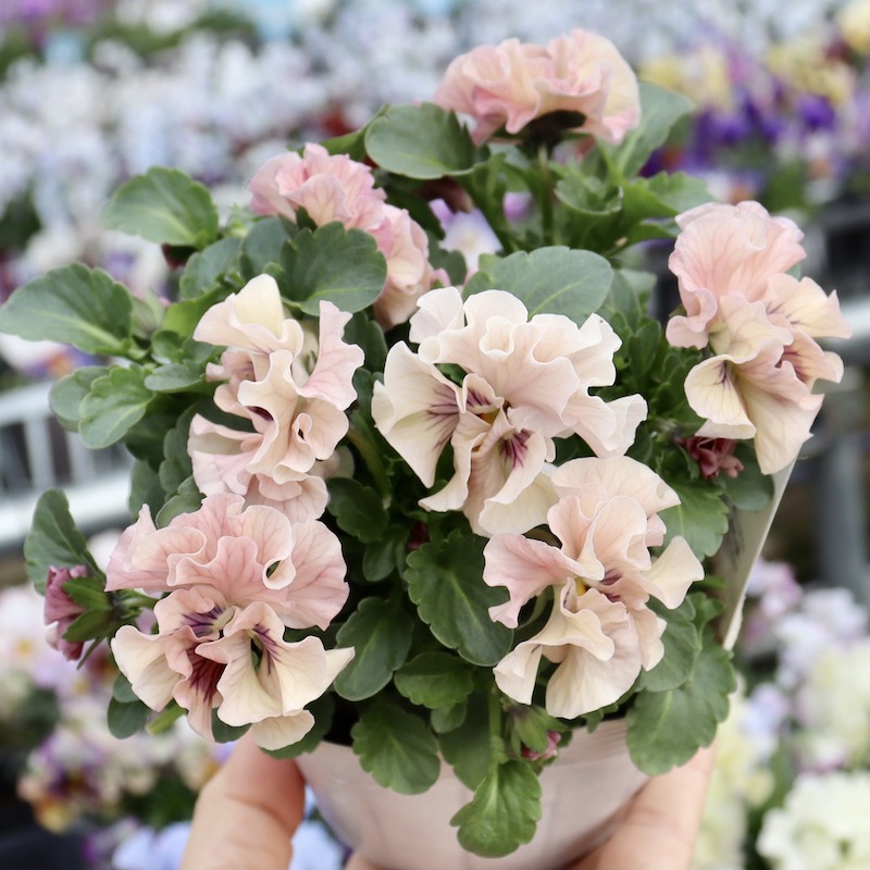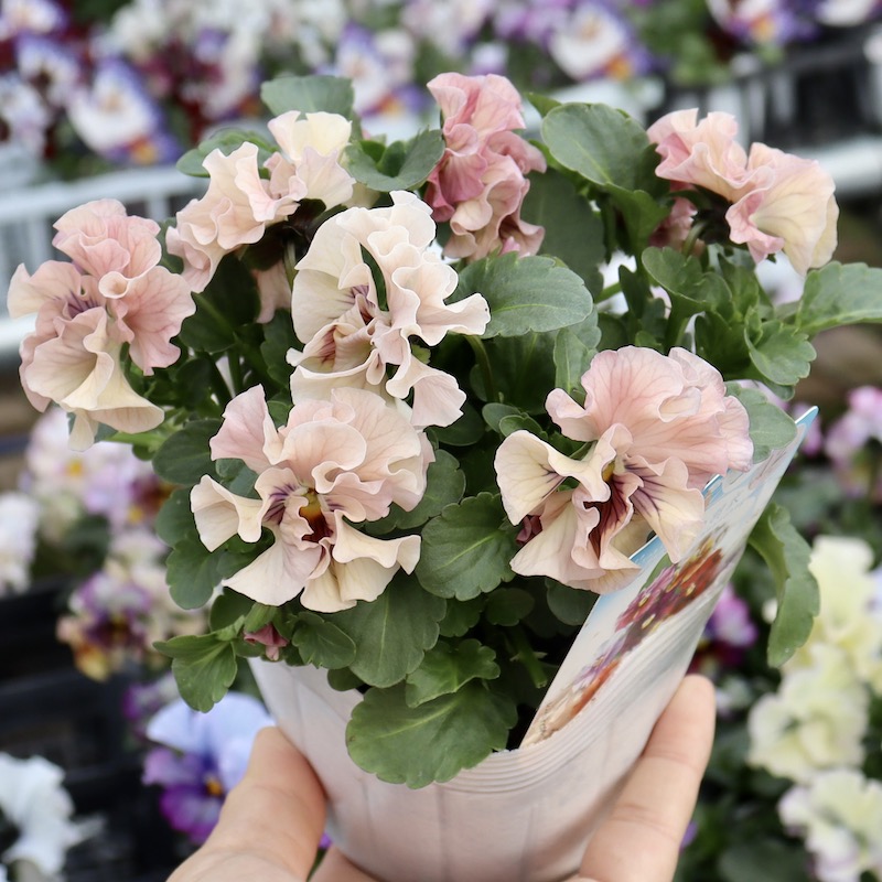 うえたさんがプロデュースされた何とも微妙な色合いが素敵なフリル咲きミニパンジーです。