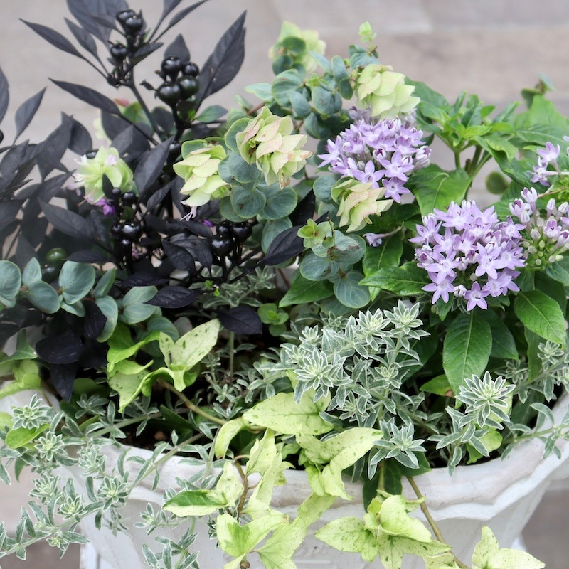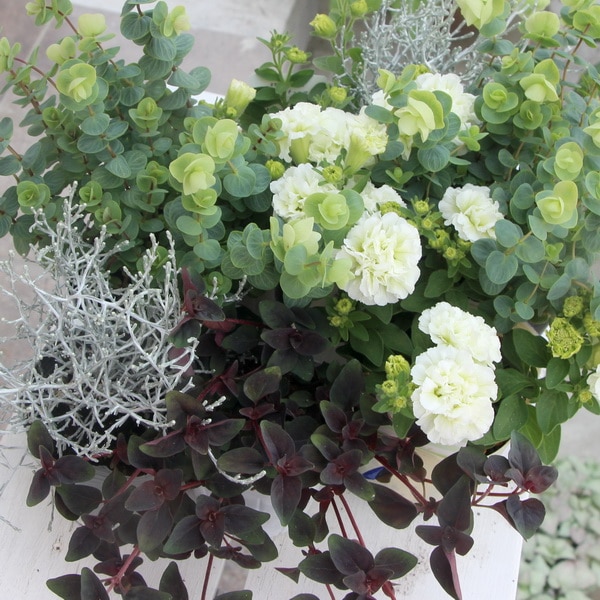 6枚目以降の掲載画像は、過年度に当店で撮影した同じ生産者さんの同品種です。 寄せ植えにオススメ! シックな大人の花ですよね♪ その上、少し暴れるようにうねりながら垂れ下がっていく、その草姿がまた素敵★★★ 他の花とうまく調和してくれます。