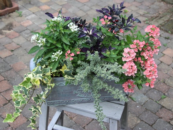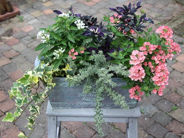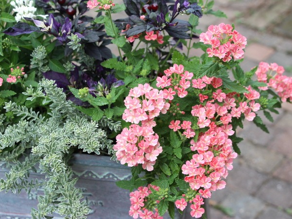 バーベナ「サーモンスター」を使った寄せ植え見本鉢を紹介したくて制作。