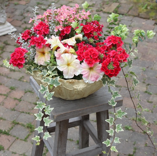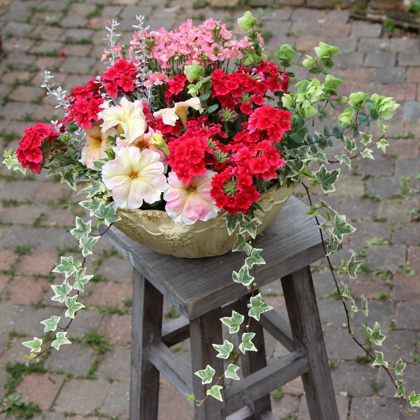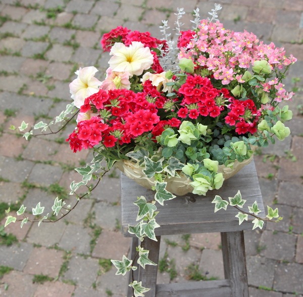 風散歩オリジナル寄せ植え 母の日の贈り物といってもありきたりの真っ赤なカーネーションの鉢物や大量出荷の寄せ鉢(かごに苗や鉢物の花を入れただけのもの)はちょっとねぇ~~~