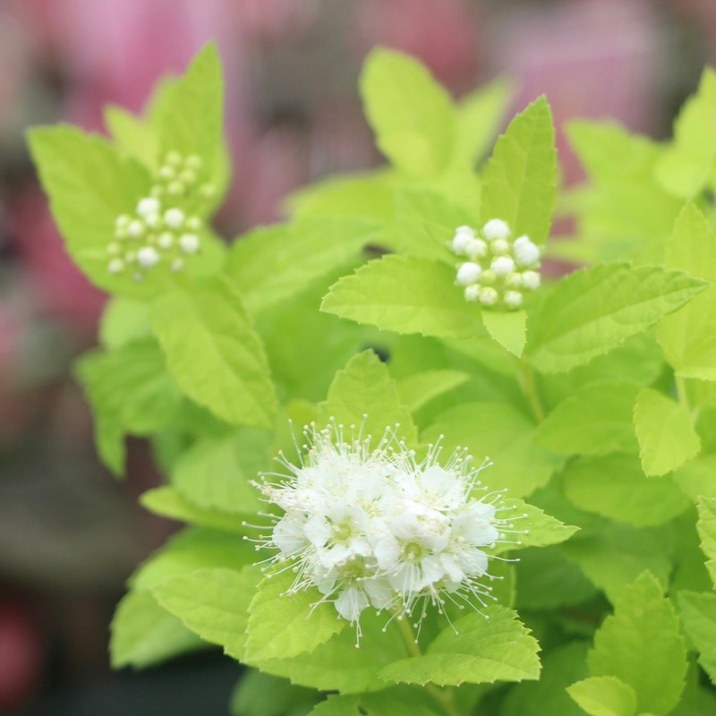 春には黄金色の葉が一際美しく、初夏から夏には白い花が咲き、そして秋には紅葉も楽しめる落葉低木。