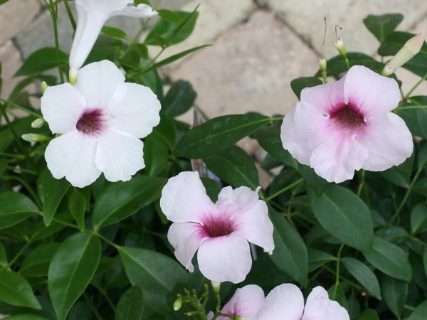 斑入り種に比べると花付きが良く、緑の葉にピンクの花がよく映えます。