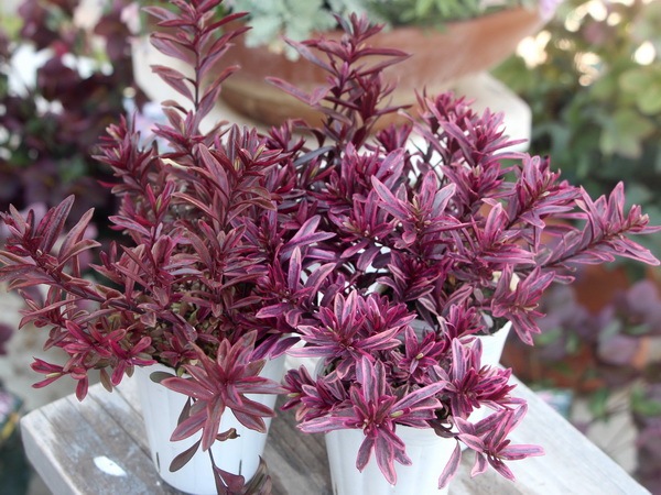 「アイスイザベラ」のような明るいピンク系ではなく、少し落ち着きのある茶色っぽい赤系で、この葉色も寄せ植えに重宝します。