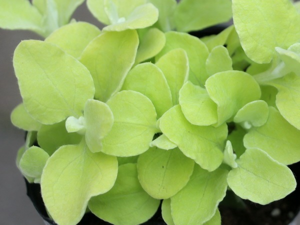 暑さ、寒さともに強い常緑多年草。 いえ、常緑低木ですね。 肉厚のあるふんわりした葉にうぶ毛のようなライムグリーンのリーフ。