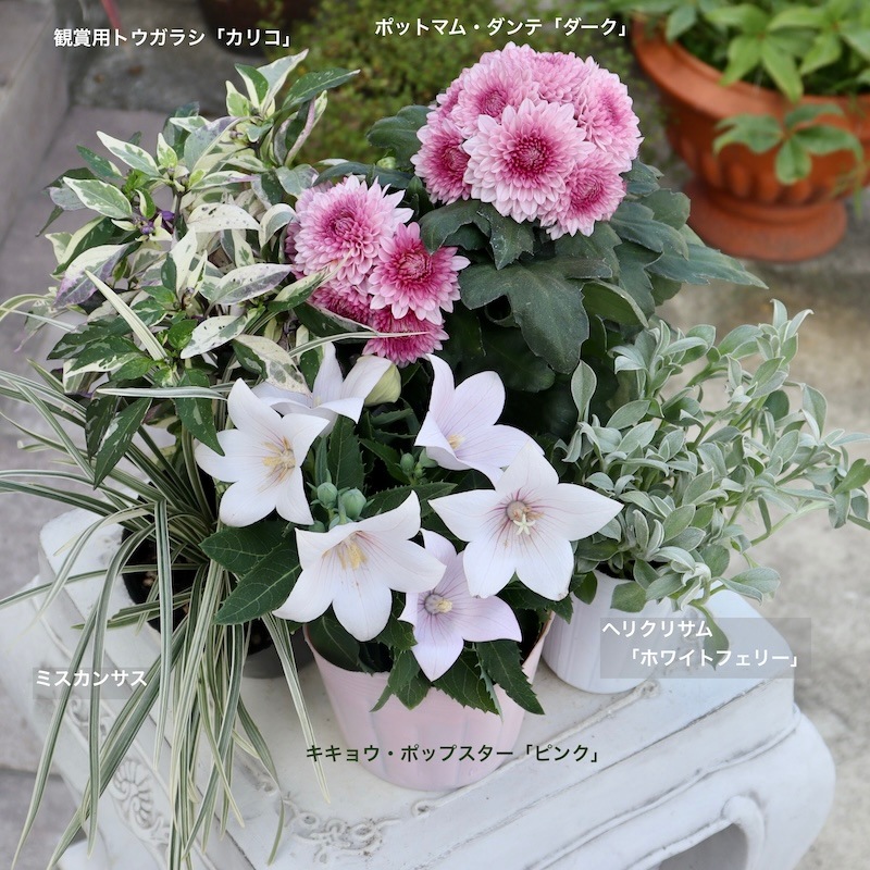 なお、同様のシャープな細葉の植物に「ベアグラス」もあります。 「ベアグラス」は黄色みがかっていますので、この「ミスキャンタス」の方がピンク系の花との相性が良好ですね☆