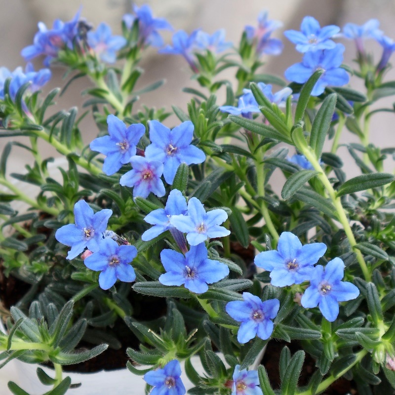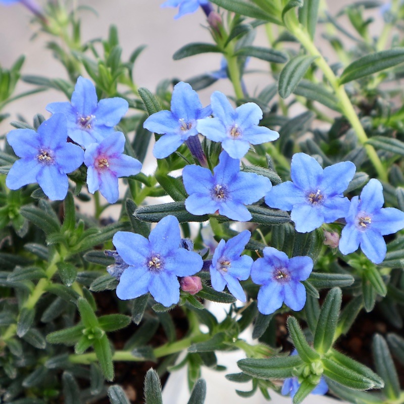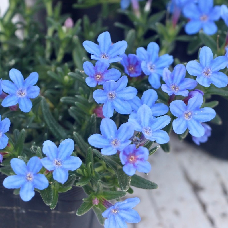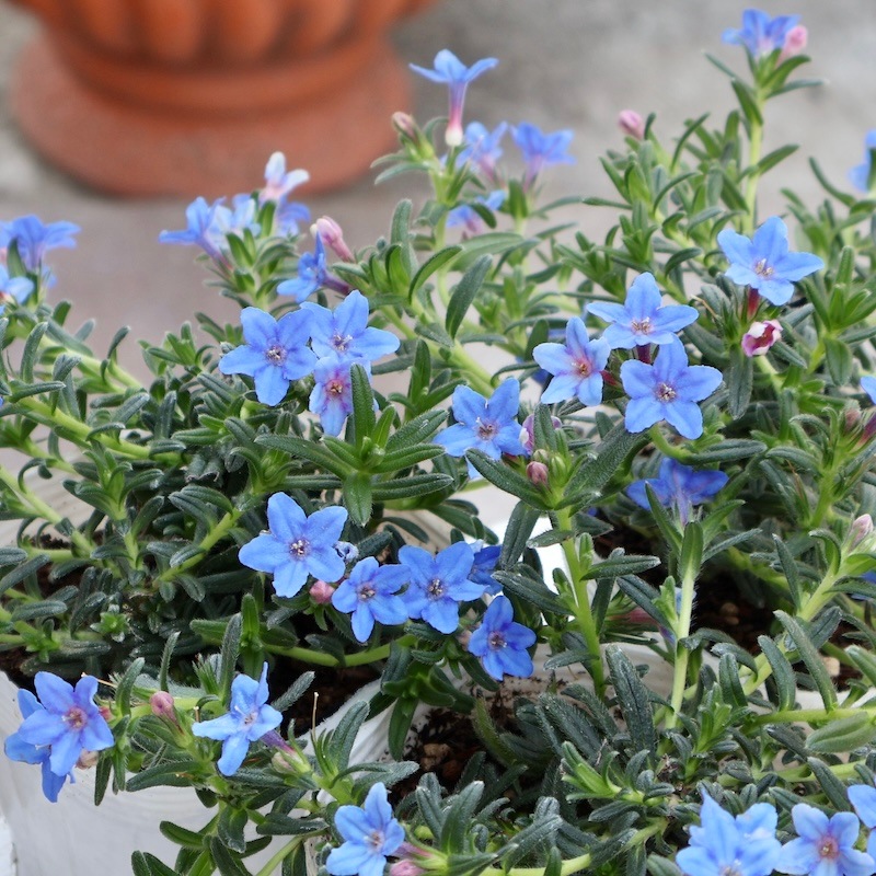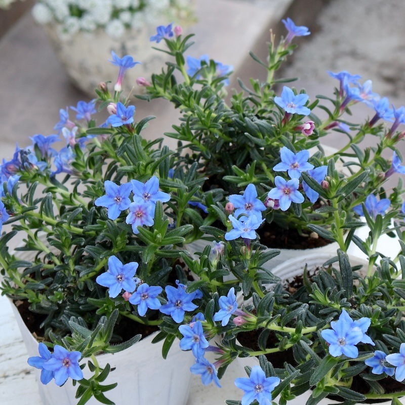************************* とっても綺麗なブルーの株が入荷♪ 入荷は今回限り ご希望の方は、お早めにどうぞ~ 目の覚めるようなブルーの星型の花。 こんなに鮮やかな本当の「青」の花は珍しいく何度見ても感激しますね。 タイトルの通り、この花の名前は「リソドラ」もしくは「ミヤマホタルカズラ」 と呼ばれています。 とっても人気のある花でが、根元まできれいな良株がなかなかなく、滅多に入荷できません。 少しは妥協も必要なんですけれどね。笑 植えっぱなしでも毎年咲いてくれる多年草です。 耐寒性もとても強くマイナス5℃でも大丈夫なので、寒冷地でも安心です。