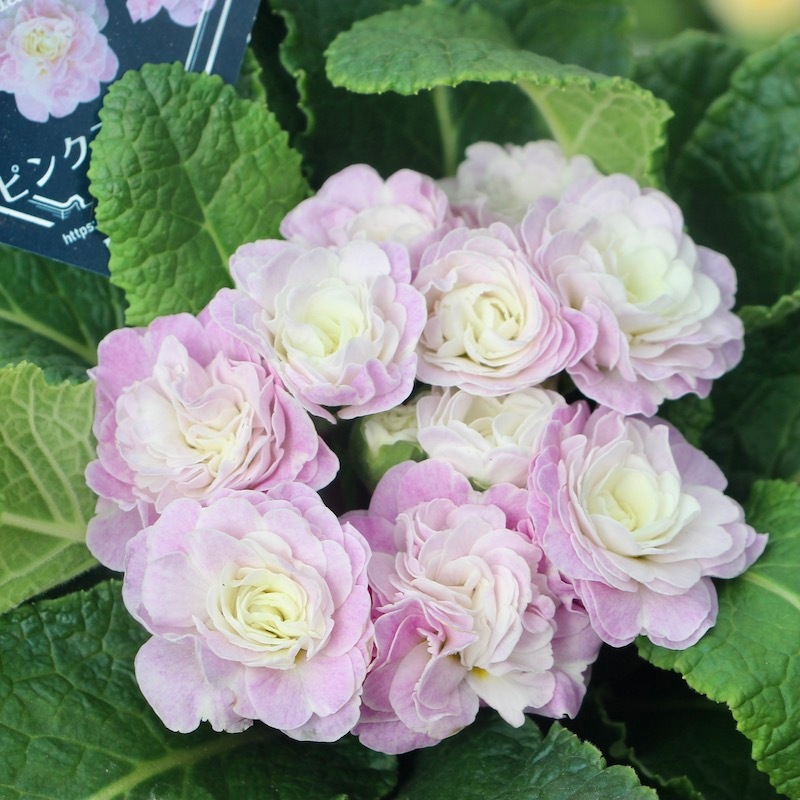 バラ咲きプリムラは咲き進むと花弁が開ききってしまうので、早めに花を摘む事をオススメしていますが、この完全八重咲きはそのままでずっと綺麗♪