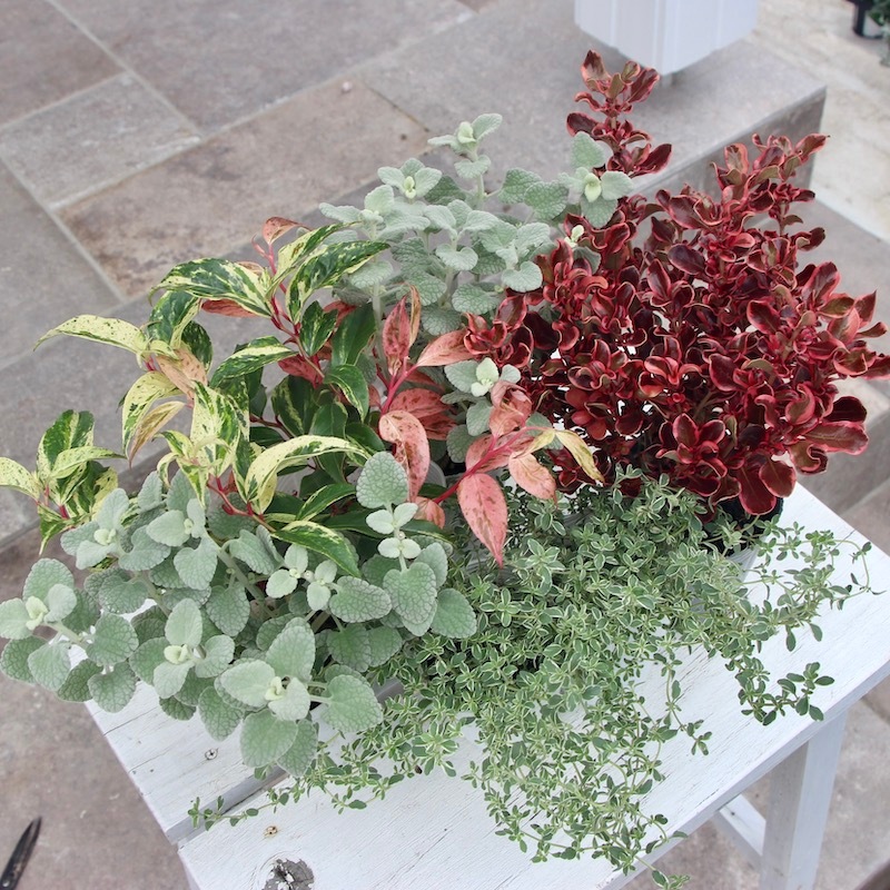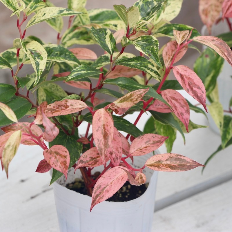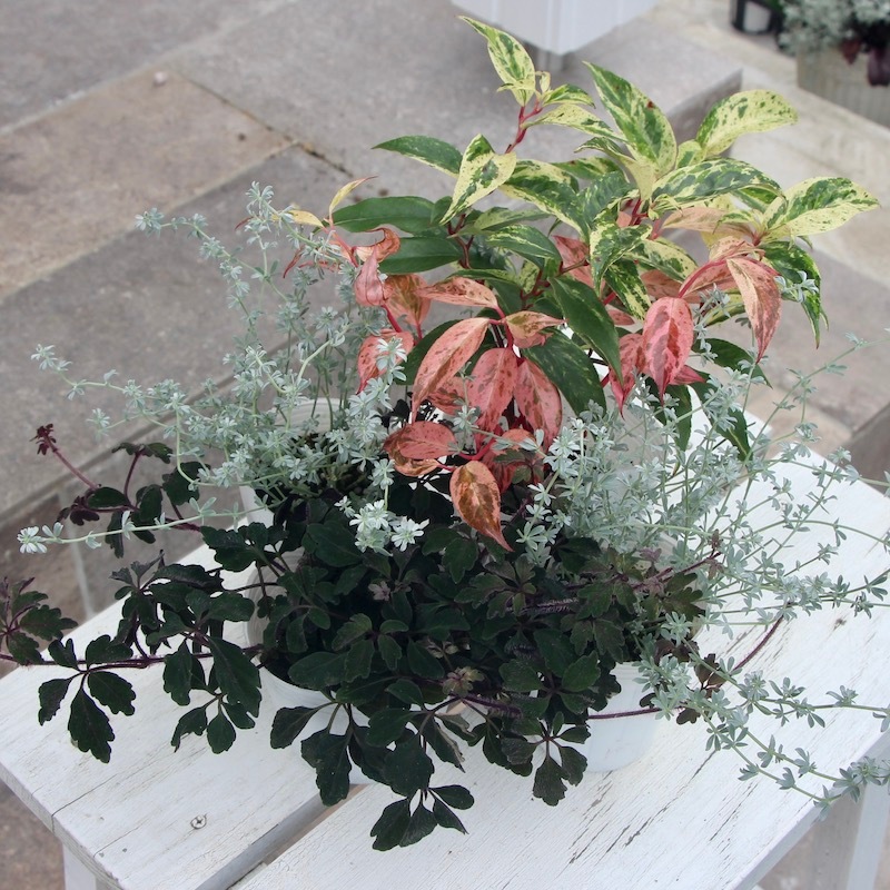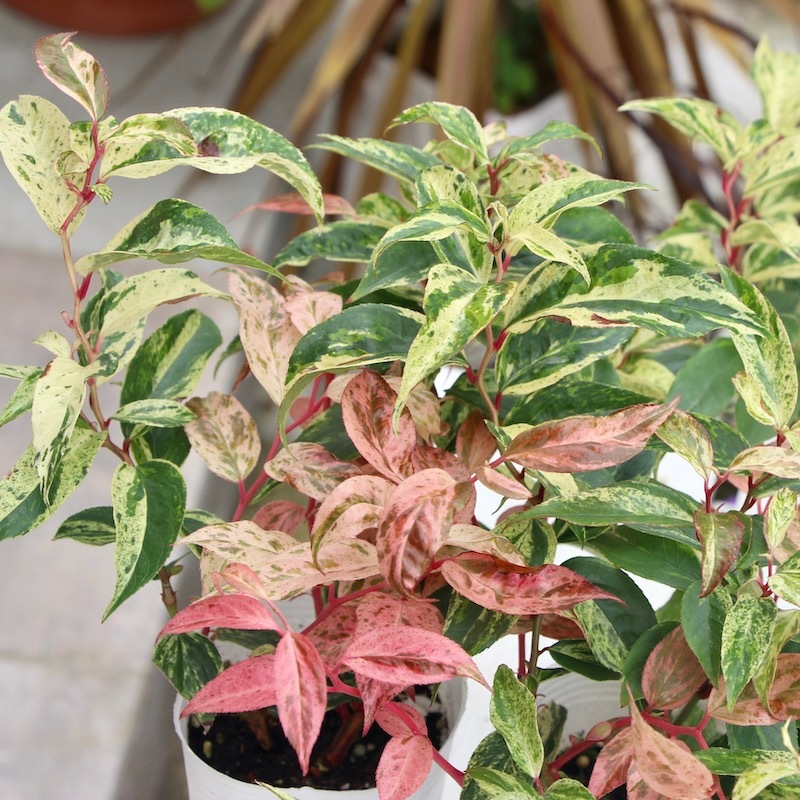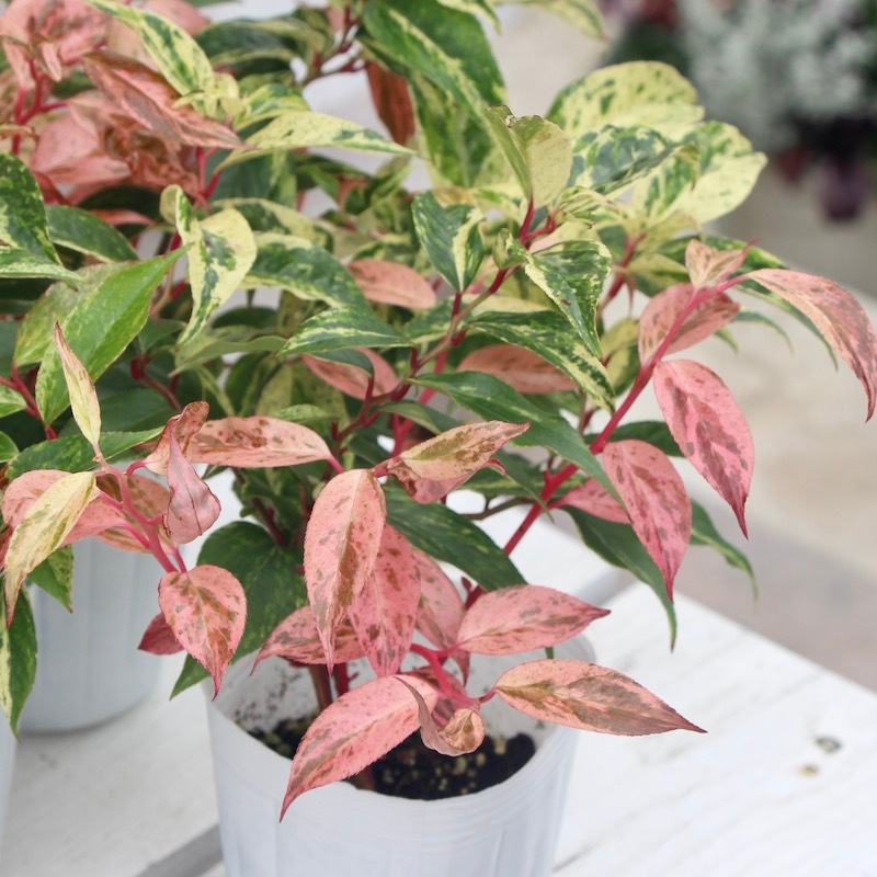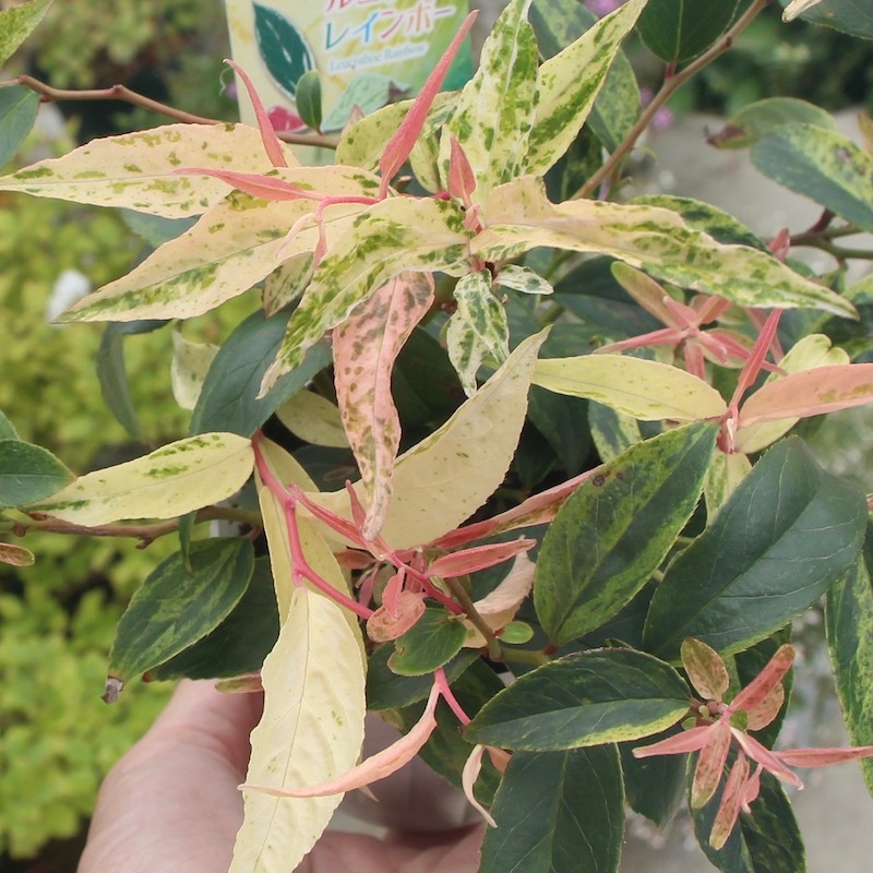 庭植えの植栽用はもちろんのこと、寄せ植えでも適度なボリューム感を出せる貴重なカラーリーフです。 株によってはボリュームがありすぎるものもありますが、不要な葉はカットして使って下さいね 黄白や紅などの斑が入る『レインボー』と呼ばれている品種。