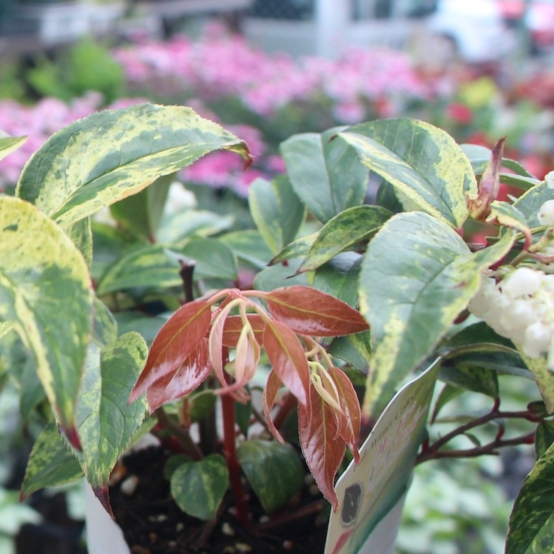 美しい新葉はクリーム色で先がピンク色、これがまたとってもきれいなんです。