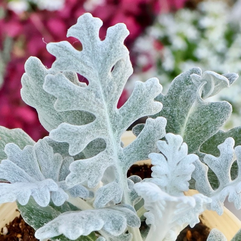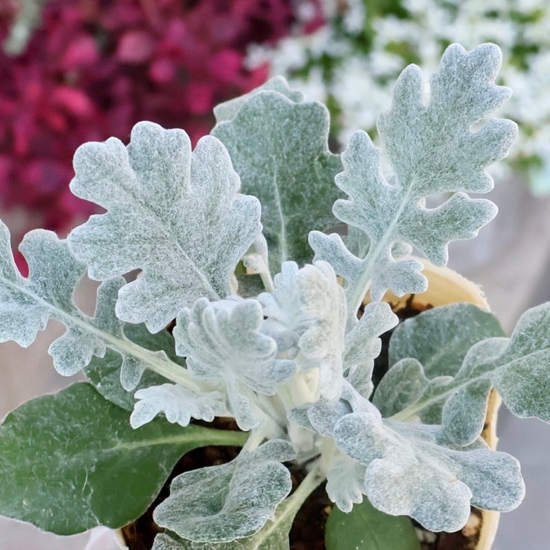 昔ながらのシルバーリーフ。 何もしなくてもこんもり育つ秋から春が一番のオススメですが、真夏だって元気モリモリ。 私はそれで敬遠したくなるのも事実ですが。笑 この葉が入るだけで色物の花がとっても映えてきれいに見えますよ。