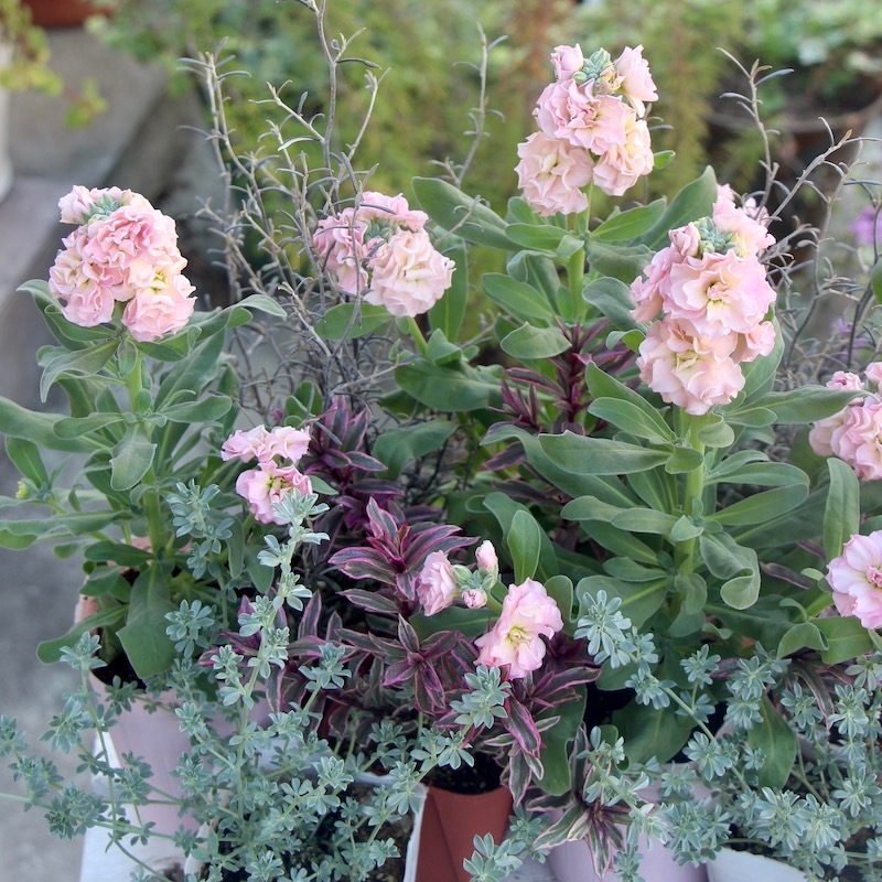 これだけ分枝して花芽いっぱいのストック、なかなかありませんよね。 矮化剤も使われていないそうで、ナチュラル♪ 素晴らしく綺麗な苗です^_−☆