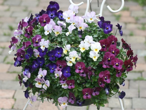 このハンギングバスケット「リンリンジャンプ」は、華やかなビオラ3種をミックス!