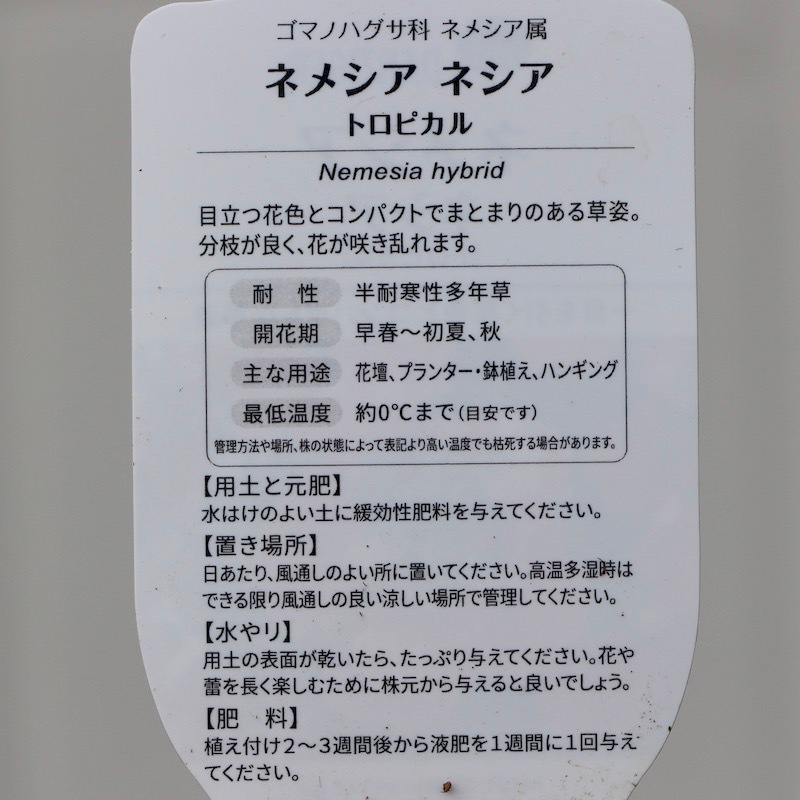 「宿根ネメシア」といのは、耐寒性のある四季咲きの多年草。