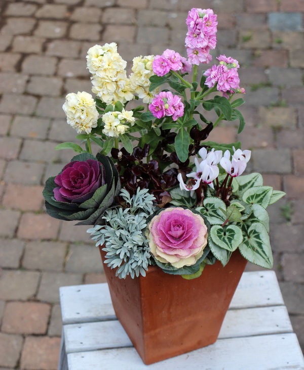 この葉が入るだけで色物の花がとっても映えてきれいに見えます。
