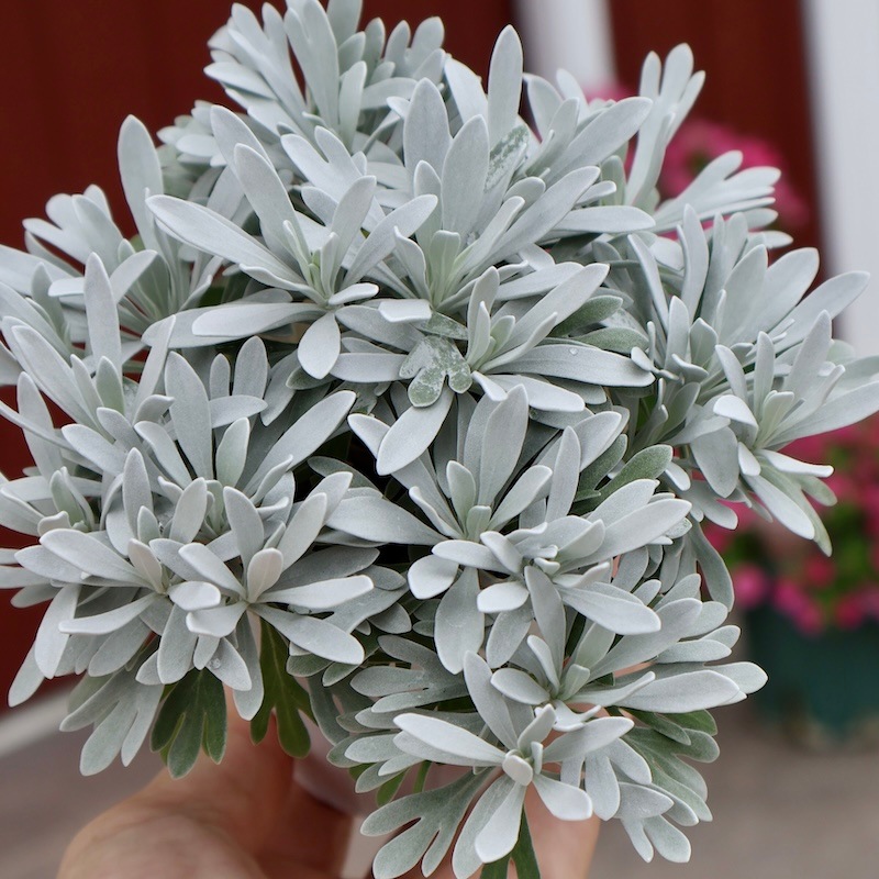 秋になるとより白みがかってきて、より美しいシルバーリーフに。 今回の苗は今でも十分に綺麗ですが。