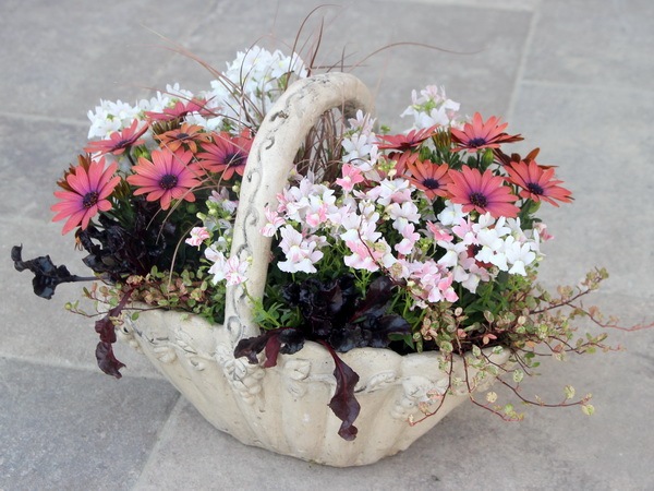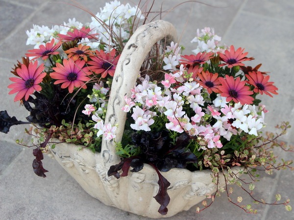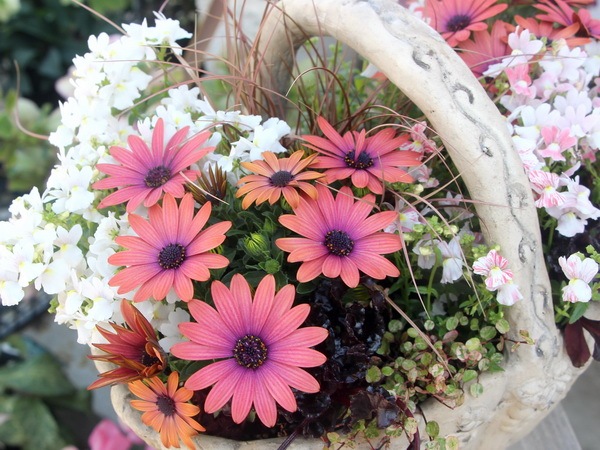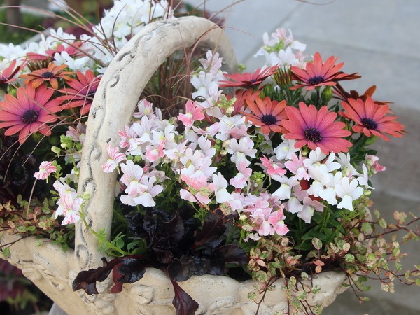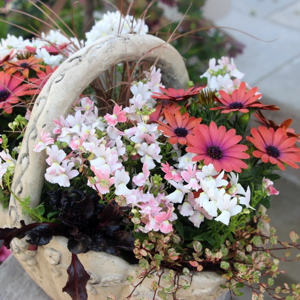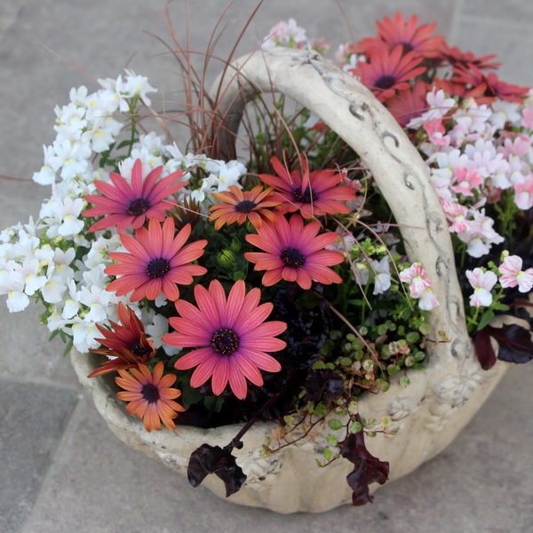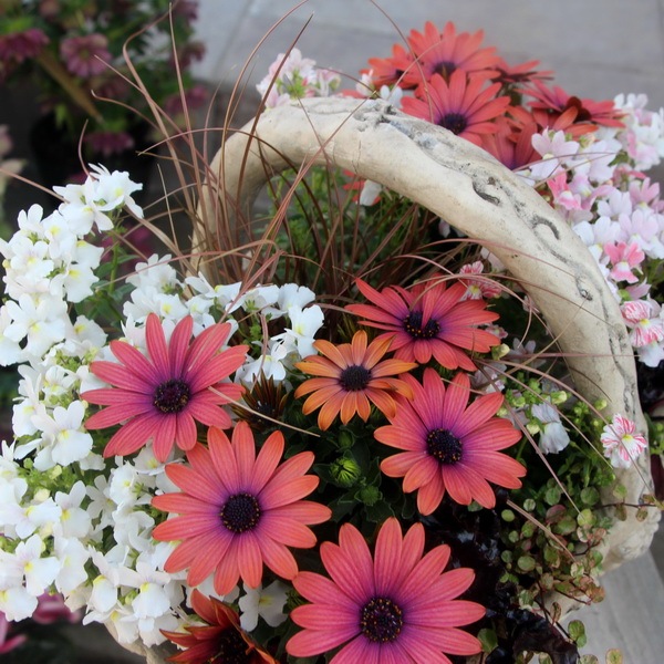 リーフものはそのままで、花の部分だけを季節ごとに植え替えて頂いてもOKです。