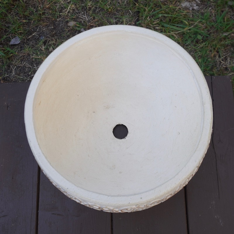 グラスファイバー製 内寸 内径 26cm 商品の性質上、気泡による小さな穴、多少のカケ、塗装の色ムラ、黒点(汚れ)などがみられる場合があります。物によっては、内面の塗装の色が濃いものもあります。 また、側面に縦の筋が入りますが、これは製造過程での型の跡で、不良品ではありません。ご了承の上でお買い求めください。 |