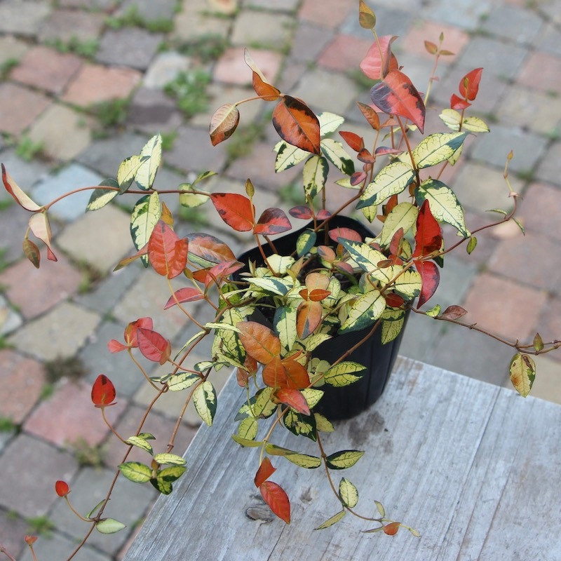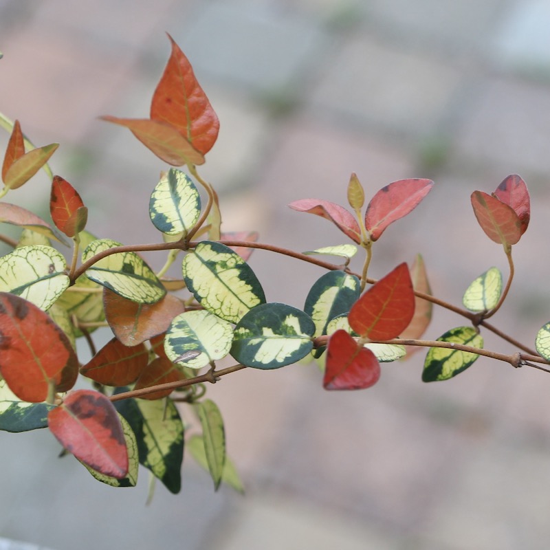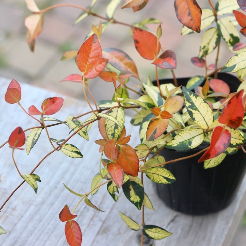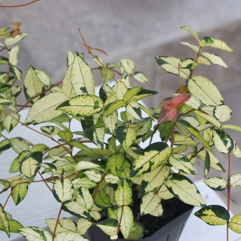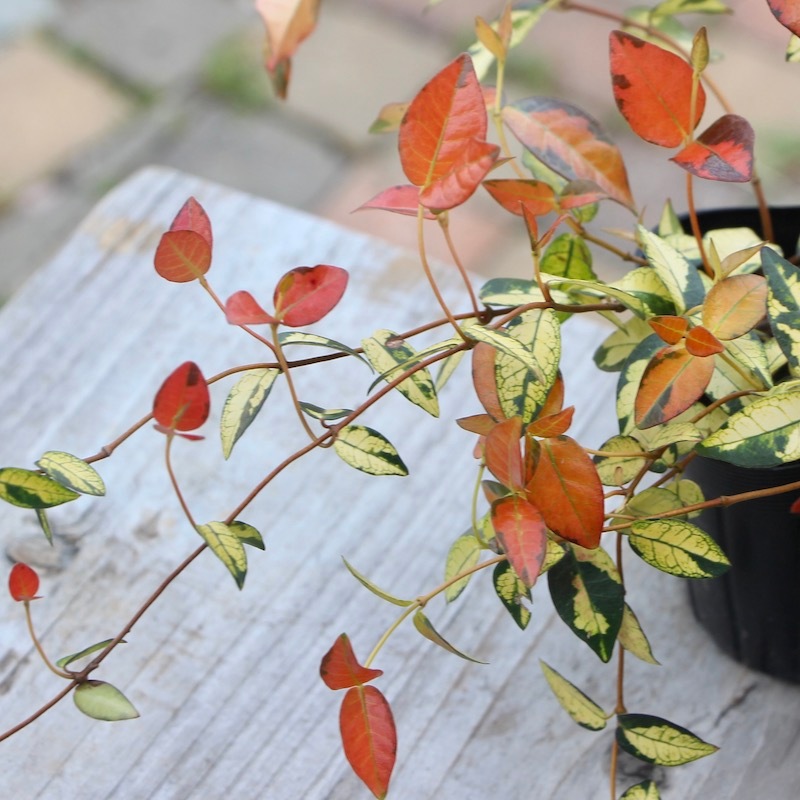 10/5 在庫を追加!! これで最後です 横に這うように広がります。 ただ、生育スピードはゆっくりめ。暴れて困ることもなく、お手入れも楽ちんですね。 カラーリーフとして寄せ植えに入れたり、グランドカバーに植え込むのもオススメです。 植えっぱなしでゆっくり育てるイメージです。 ツルを絡ませて高く這わせると、それもまた目を引いて素敵です。 黄色っぽい斑入り葉も爽やかですが、春~秋の赤やオレンジの新芽がとっても可愛いんですよね。