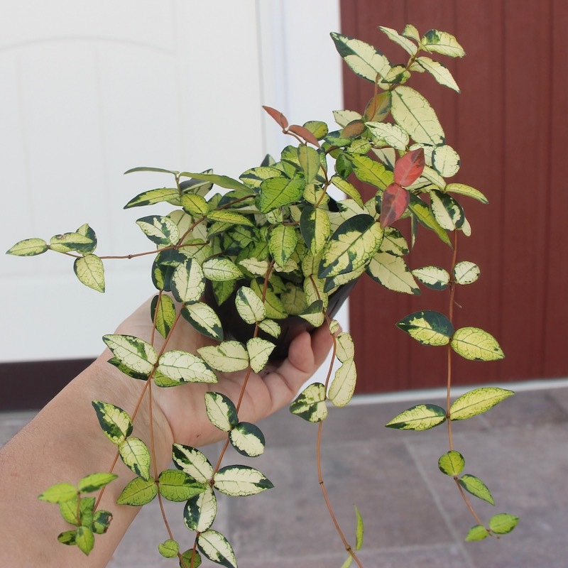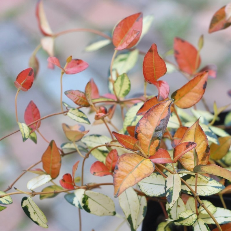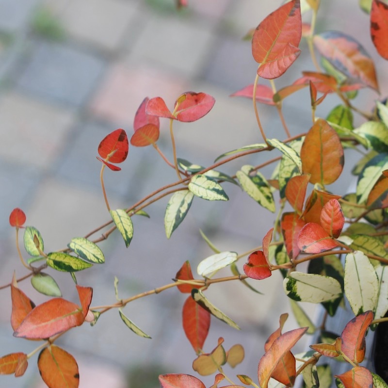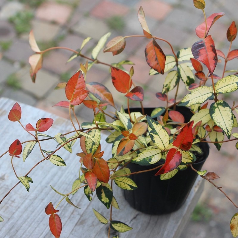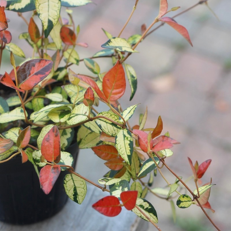 10/5 在庫を追加!! これで最後です 横に這うように広がります。 ただ、生育スピードはゆっくりめ。暴れて困ることもなく、お手入れも楽ちんですね。 カラーリーフとして寄せ植えに入れたり、グランドカバーに植え込むのもオススメです。 植えっぱなしでゆっくり育てるイメージです。 ツルを絡ませて高く這わせると、それもまた目を引いて素敵です。 黄色っぽい斑入り葉も爽やかですが、春~秋の赤やオレンジの新芽がとっても可愛いんですよね。