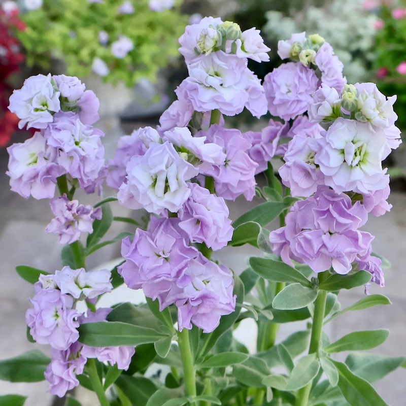 これだけ分枝して花芽いっぱいのストック、なかなかありませんよね。 矮化剤も使われていないそうで、ナチュラル♪ 素晴らしく綺麗な苗です^_−☆