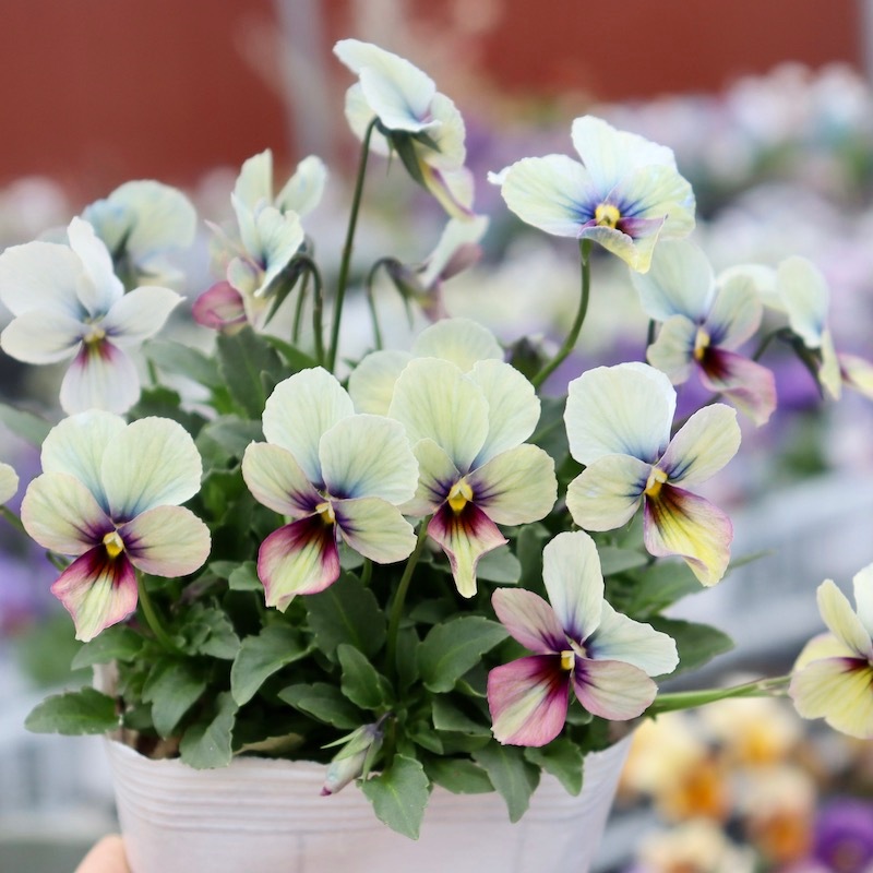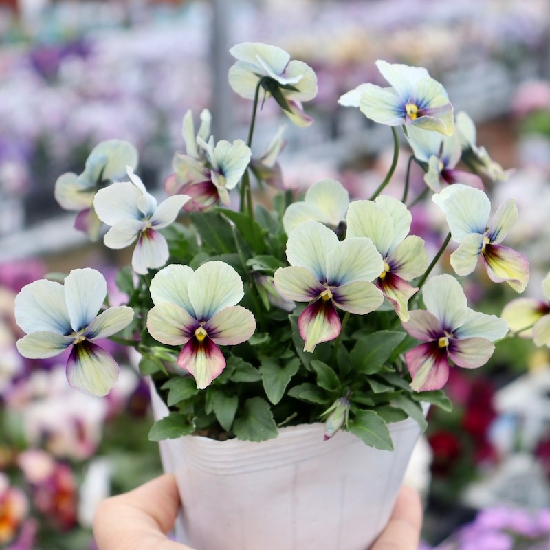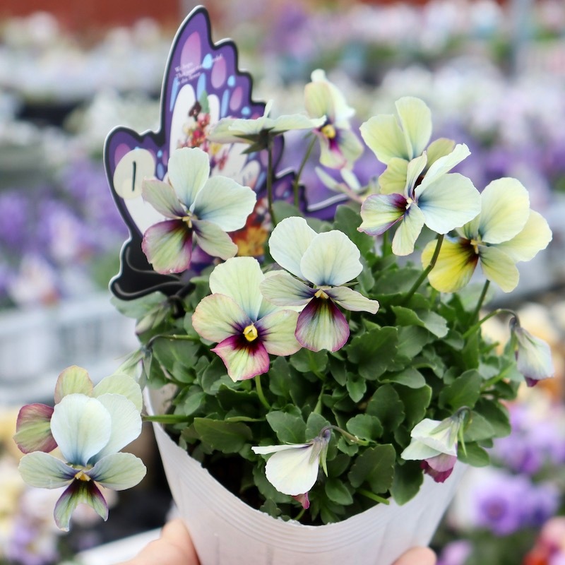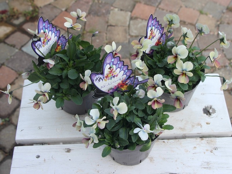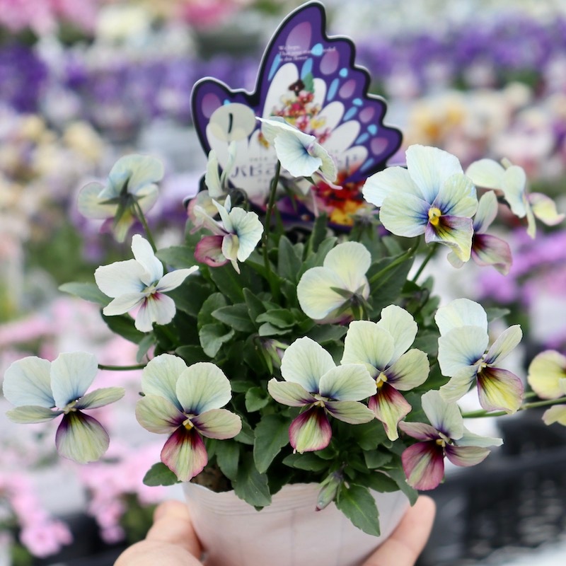 高知の植田さんがプロデュースされたビオラ「パピヨンワールド」 色別ラベルなしのアソートでの入荷です。でも、でも、どの色も美しい。 幸せ~♪何て美しいんでしょうね。