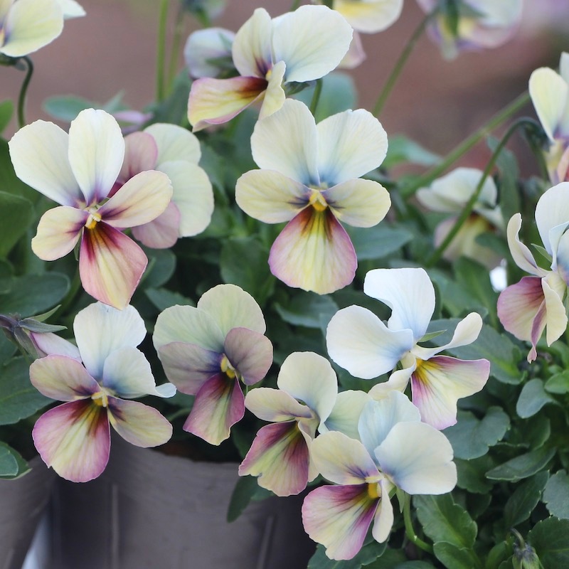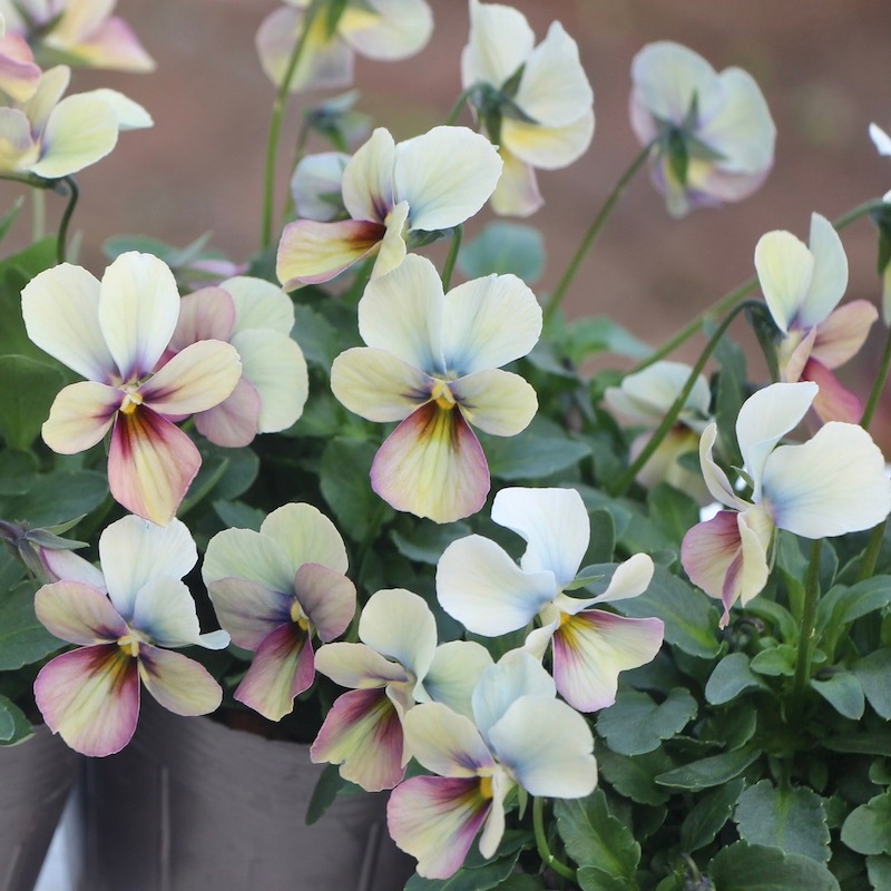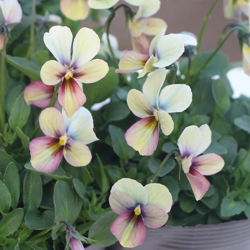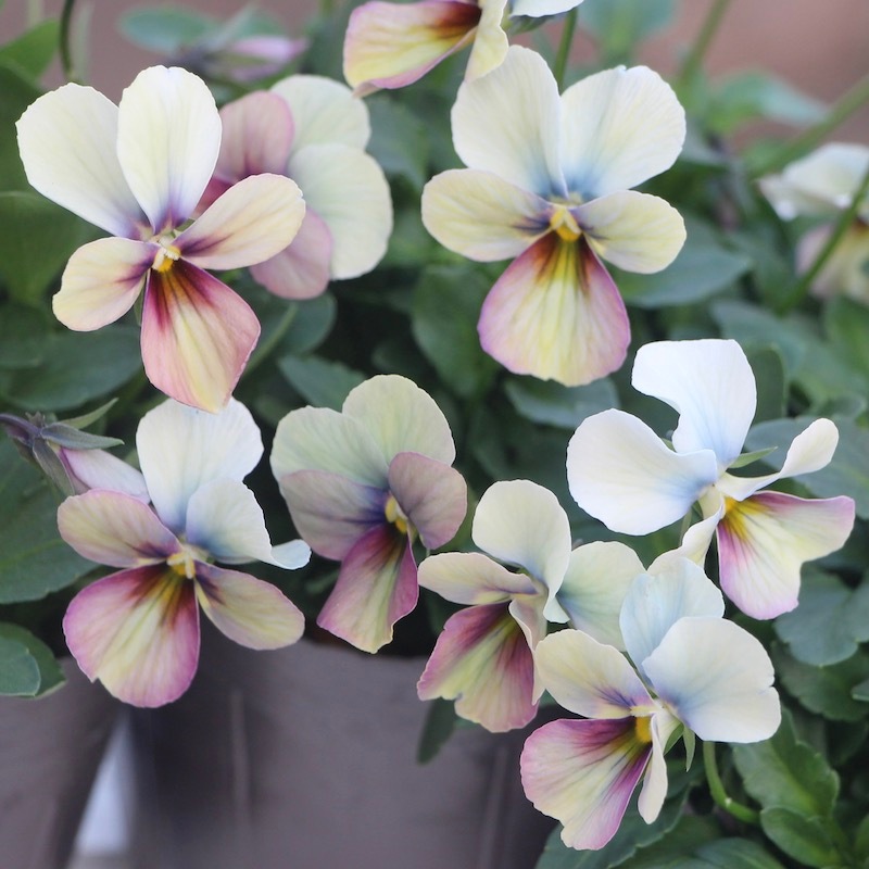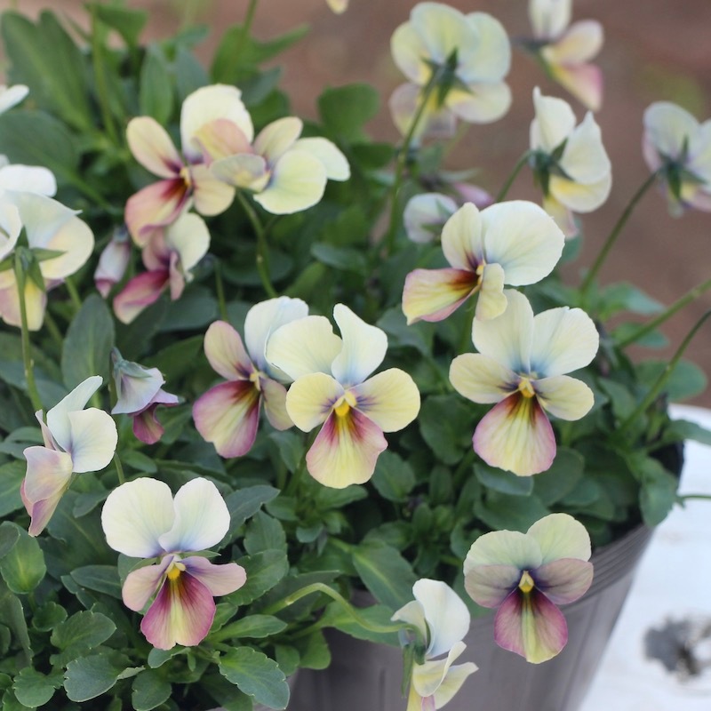 高知の植田さんがプロデュースされたビオラ「パピヨンワールド」 色別ラベルなしのアソートでの入荷です。でも、でも、どの色も美しい。 幸せ~♪何て美しいんでしょうね。