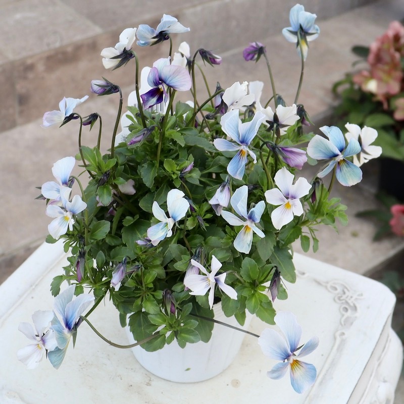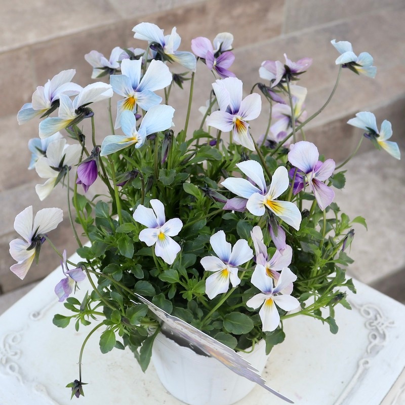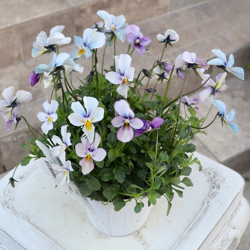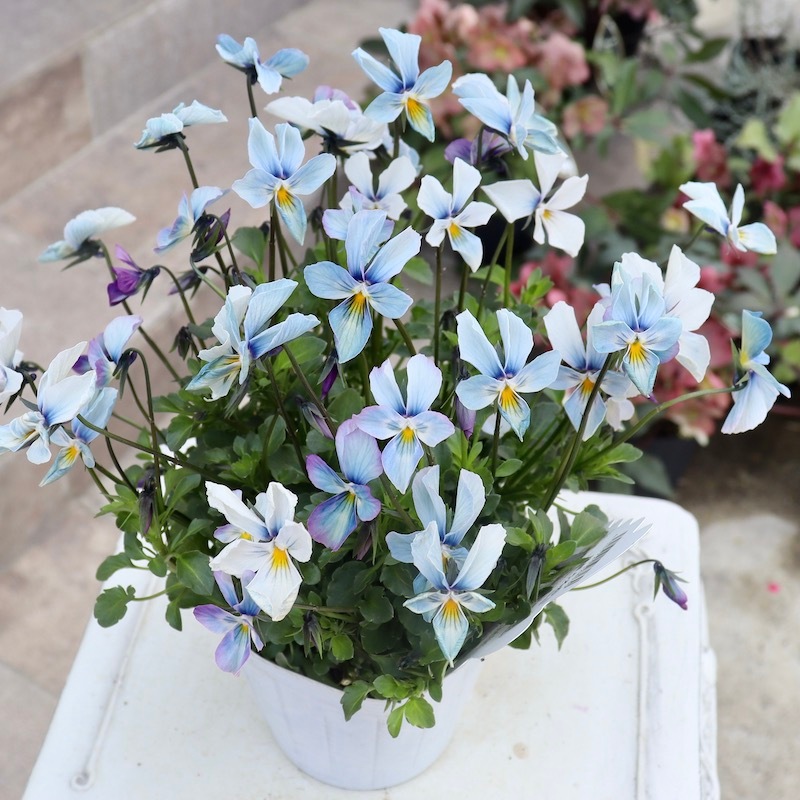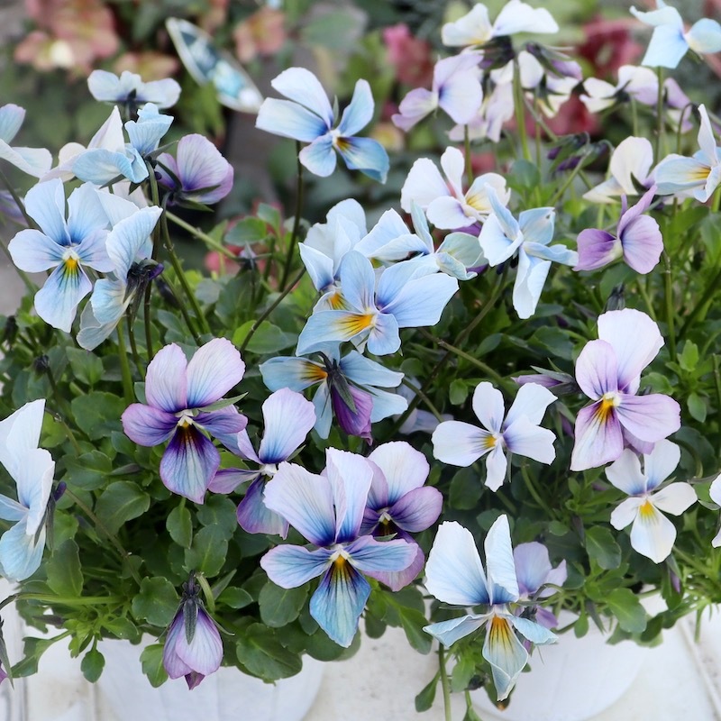 | 3/8 ブルーが戻ってきたので、再販しますね。 冒頭から18枚目までの掲載画像は、2024年3月8日に撮影したものです。 (今はまだブルーに戻る途中ですが^^;) 画像の現品もしくは同等品をお届けします♫ 今年は2月下旬から3月上旬が予想外に寒いのですが、それでもやっぱり花は春を感じてくれています。水色ブルーが復活してきています!! まだ完全にブルーに戻っていないので、今回は〈21-25〉として販売しますが、 〈21-15〉とほぼ同じです。 19枚目以降の掲載画像は、過年度に当店で秋に撮影したものです。 21-15番と同じ系統の花です。 その2者は咲き進みや気温による差異です。もちろん、個体差はありますが。 なお、例年通り、細かすぎる色分けをしていますので、今後開花が進むと花色が変わってくるものもあります。現在の花色での色分けです。あらかじめご了承ください。 最新の入荷株の状態は Instagramの動画でご覧頂けます♪ ************************* こんな色の花があるんですね~ と驚かれる素敵な色が豊富に揃うパピヨンワールド☆ しかも乱れにくく、春の美しさもピカイチ。育てて実感する「パピヨンワールド」の威力! 「パピヨンは外せない!!」 と虜になってしまいますよね~(笑) お買い上げ下さったお客様からは、画像よりずっと素敵だった~ 一番欲しい色は買えなかったけれど、他の色も素敵だった~ とのお声を毎年多数頂きます。 どの色も個性があって魅力的♪ 今回は購入数制限無しです!! すぐに完売したらごめんなさい。 ブルーの花色を確認でき次第、また販売在庫を追加しますね。 もう少し暖かくなれば、きっとまたブルーが戻ってくると思いますので。 今年もお好みの色を選んでお買い求めいただけるように、花色で選別。風散歩独自のグループ分けをして品番を付けました。 ラベルの上部に手書きしたシールを貼っています。 余りにも色が豊富なため、色分けしての販売は、正直、非常に手間がかかり大変ですが。。。(-_-;) お客様の喜びのお声だけがそのパワーとなっています。 お好みの色を選んで下さいね。 なお、素敵な花なら色はお任せで良い方、どの色が良いか迷ってお困りの方は、 お買得な「お色お任せ4株セット」もご用意しました。合わせてご検討くださいね。 この花の説明? 色別ラベルなしのアソートでの入荷です。でも、でも、どの色も美しい。 幸せ~♪何て美しいんでしょうね。