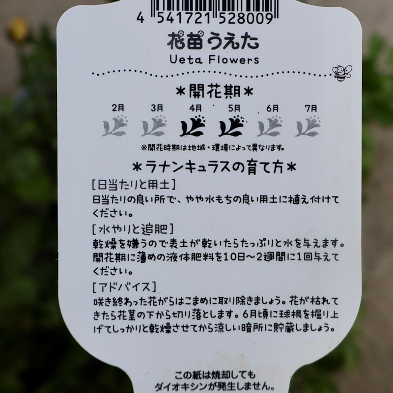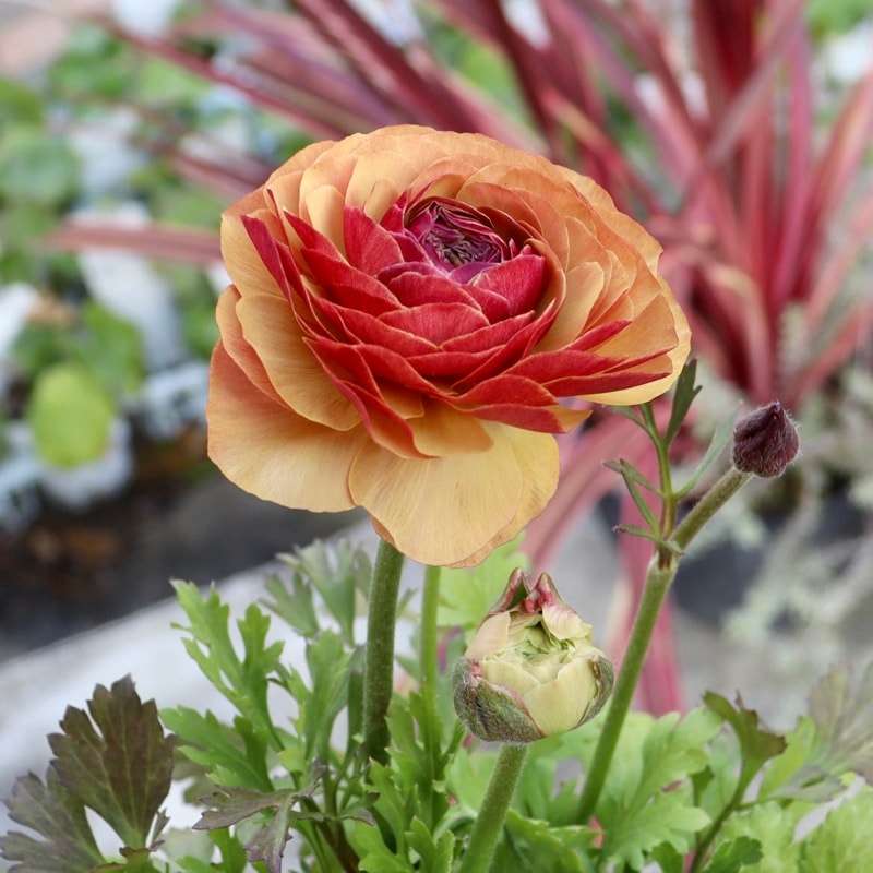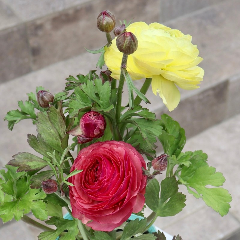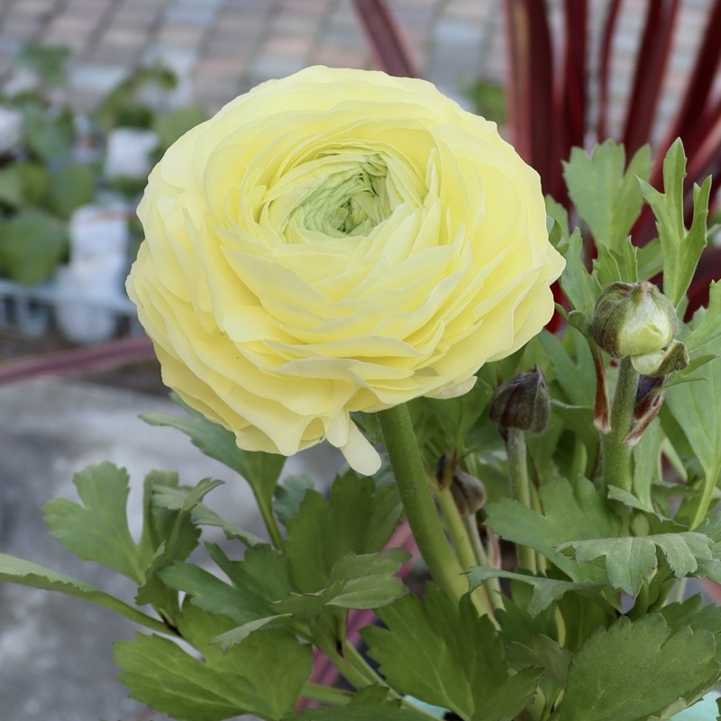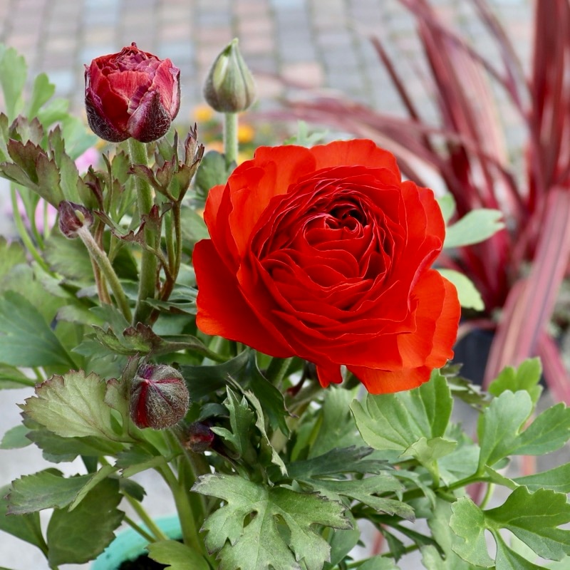 色の希望のある方は、いつも通りの色分け現品販売をお待ちくださいね。 「エトワール」の開花イメージとしては、こちらの一覧をご参照くださいね。 全く同じ花色はまずありませんが、過年度の現品販売画像をご覧いただけます。 ラナンキュラスといえば、春に華やかな八重の大輪花を次々と咲かせてくれる秋植え球根ですが。。。 最近は開花した苗で楽しむ方が増えていますね。
