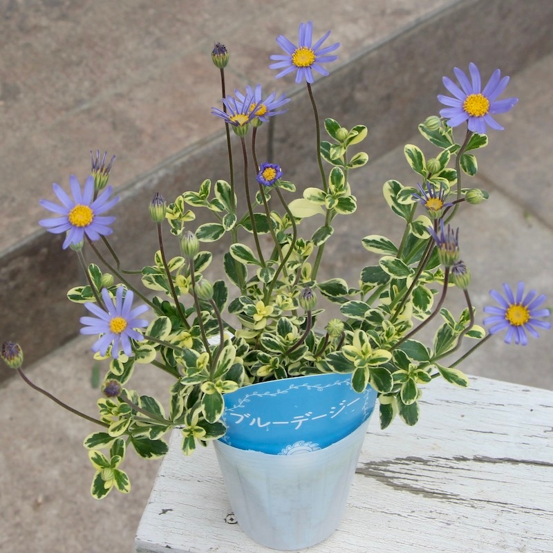 がっちり株で開花♪超良株の斑入りブルーデージー