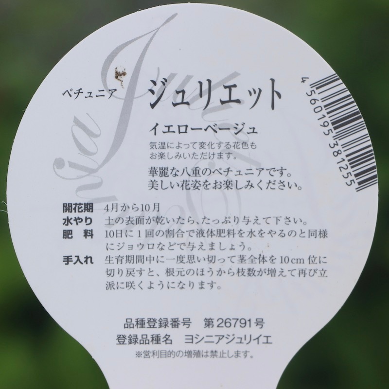 八重咲きペチュニア・ジュリエット「イエローベージュ」(3.5号ポット)
