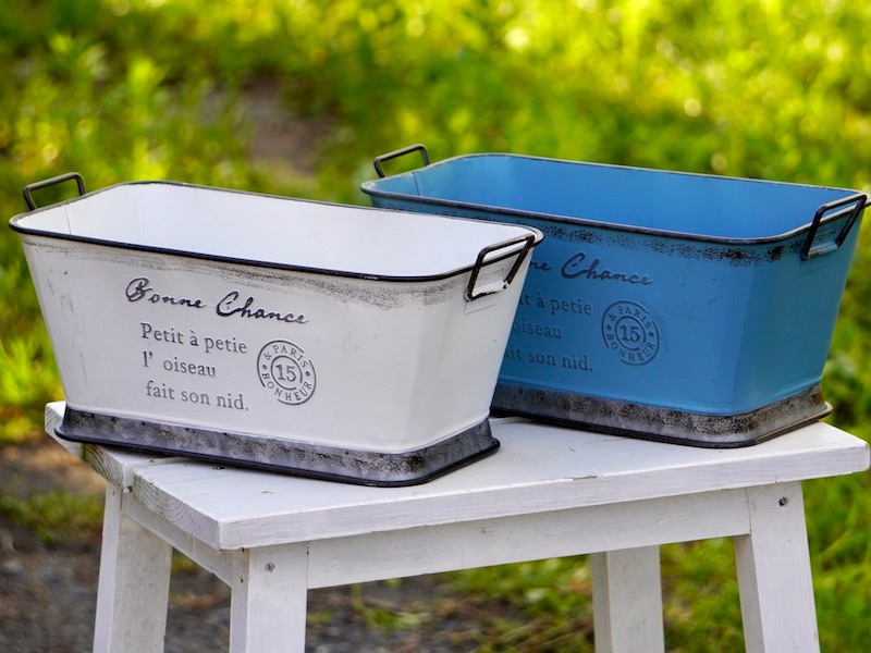 新商品入荷!! こないだの展示会で、新商品のちょっと上質なブリキ製のポットを見つけ 植物を植えた時に邪魔にならない両手つきタイプをチョイスしました。持ち運びにも便利ですね。 もちろん、ガーデニングツールや球根などをちょっと入れて置いておく・・・小物入れ(容器)として使っていただくのもいいでしょう。
