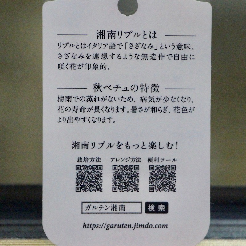 「リプル」というのは、イタリア語で「さざなみ」という意味で、穏やかな湘南の海の波のように無造作に咲く花の姿から名付けられたそうです。素敵ですね。
