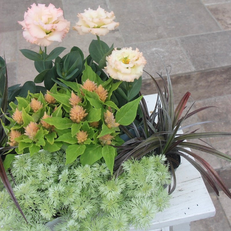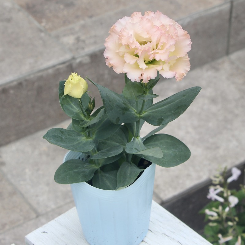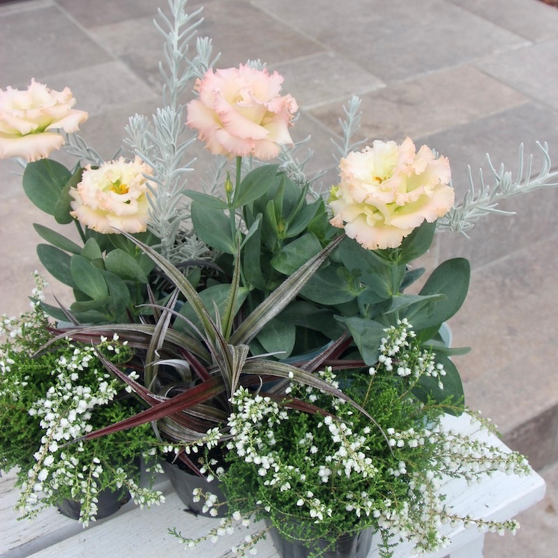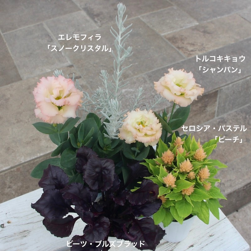 このトルコキキョウは、地上部が20㎝前後で開花していても倒れそうにはならないので、寄せ植えにも使いやすいです。