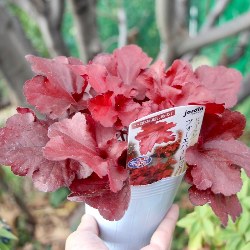 ヒューケラはちょっと高値の苗ですが、これだけ綺麗で年中楽しめるのだから納得ですよね〜。