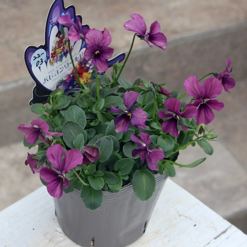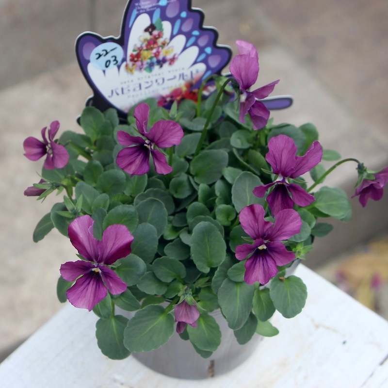高知の植田さんがプロデュースされたビオラ「パピヨンワールド」 色別ラベルなしのアソートでの入荷です。でも、でも、どの色も美しい。 幸せ~♪何て美しいんでしょうね。