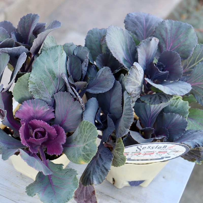 今は、パンジーを代表するように品種改良が進み、冬も咲き続ける花が増えましたが、ハボタンほど植えた瞬間から途切れずにずっーときれいな冬花はありません。大きく育つのを待たなくていいんですものね。 冬の寄せ植えやリース、ハンギングバスケットがさらに素敵に変身しますよ♪ 春、暖かくなると「トウが立つ」と言って、真ん中から花茎がひょろっと伸びてきて、まるでソフトクリームのようになり、さらにその先に花が咲きます。 トウがたつ直前まで楽しんでいただくか、花を咲かせるまで楽しんでいただいてもかまいません。 (古いハボタンのイメージの方は驚かれると思いますが・・・)