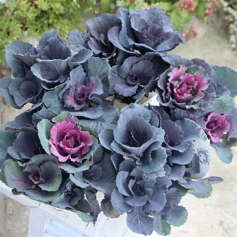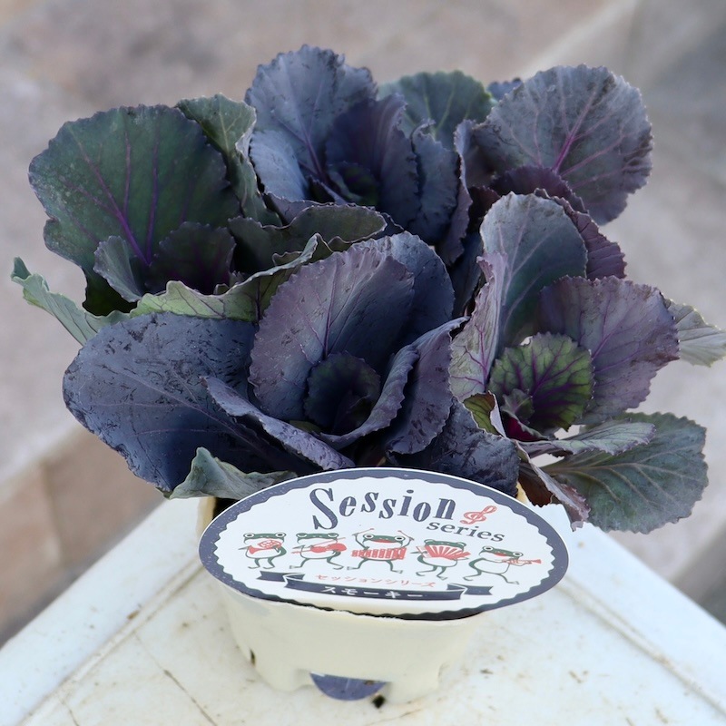 11月の気温が高すぎて葉牡丹が色づかない大問題が勃発!! 昨年も12月に入らないと綺麗に色づかず、ずっと販売できずにいたり、白く色づいた葉が緑に戻ったりしたので、今年は遅め遅めの納品予約をしていましたが・・・ もう見切り発車状態で入荷し、当店の一番寒いところで栽培管理中です。 ハボタンの生産者さんもホント大変です!! ハボタンは「冬を楽しむカラーリーフ」として、12月から1月に販売するように園芸業界全体で変えていかないとダメですね。 「お正月のための植物」「お正月が過ぎたら抜く」というのは徐々に無くなってきていると思いますが、まだまだ根底にある「年末までに植える植物」「1月に売ってたら残り物」という古い考えは捨てて変えていきましょう。 お客様の意識を変えてもらうようするのは店側の仕事ですが^_−☆ そんな中でもこの「スモーキー」は割と綺麗なので、販売始めますね。