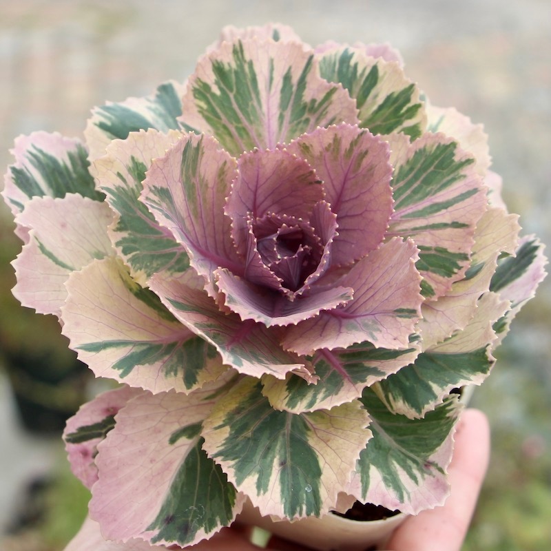 アンティーク系カラーの個性的で美しいハボタンです。 意外と明るい色で華やかさも感じられますよ。