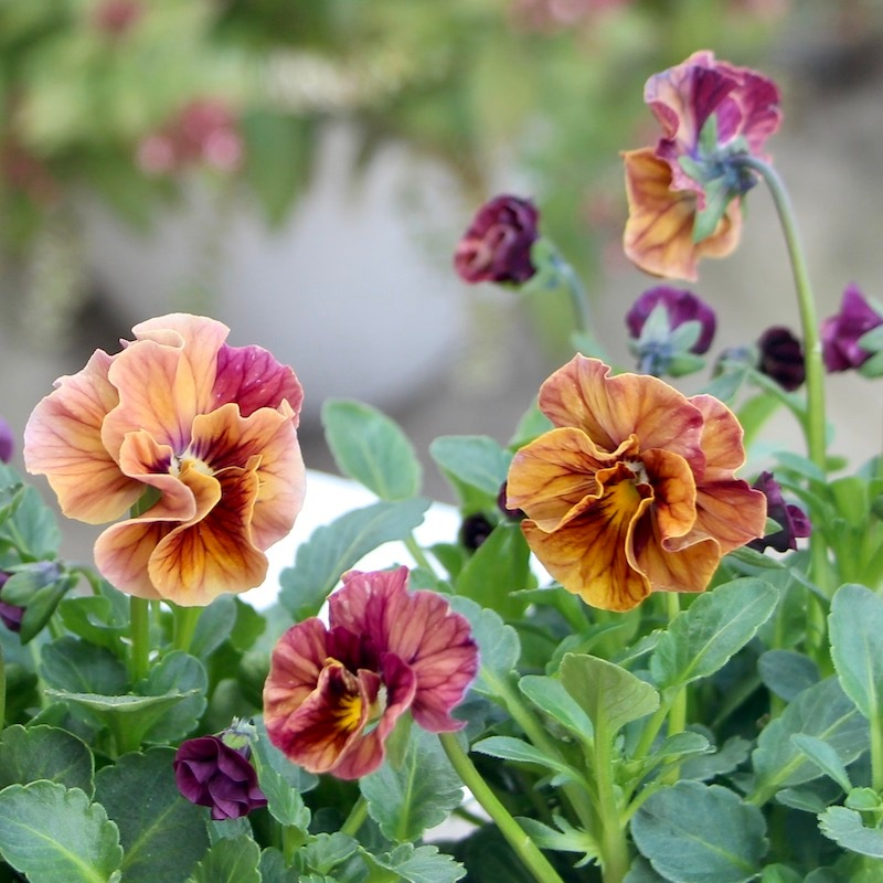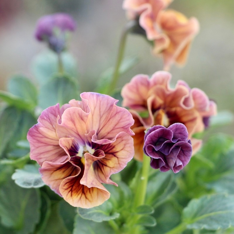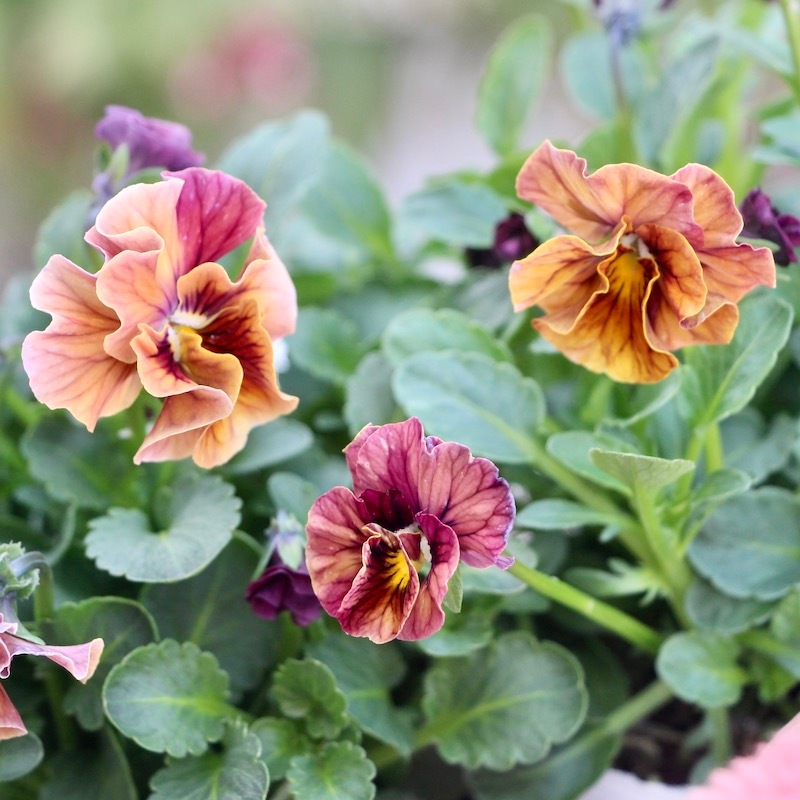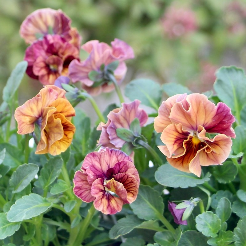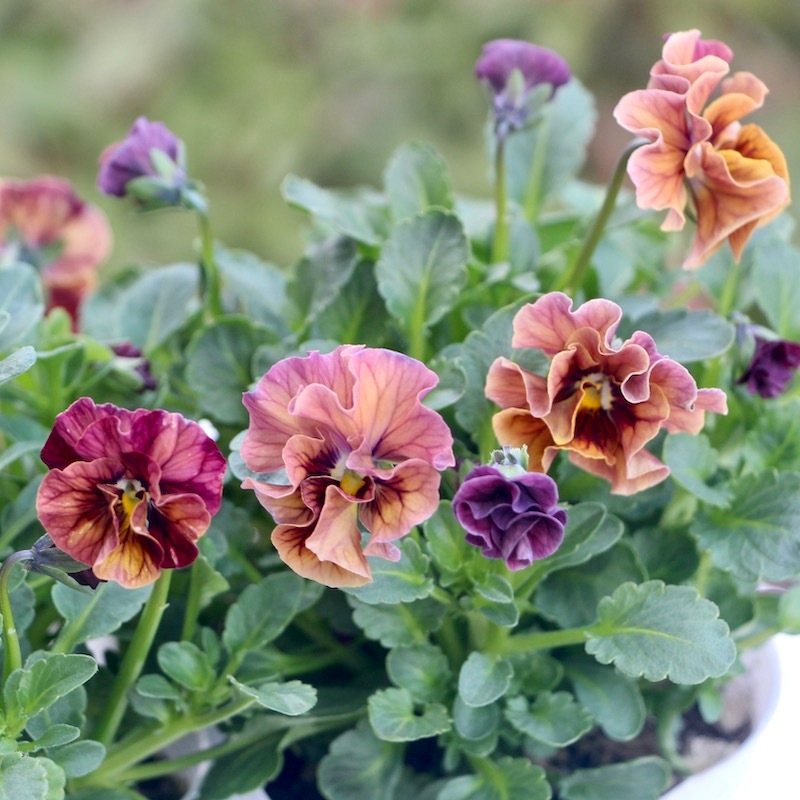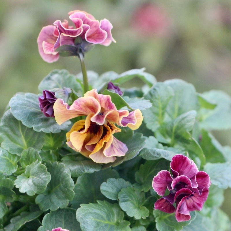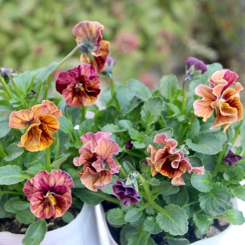 風散歩で扱うビオラの代表選手 「パピヨンワールド」をはじめ、キュートな色、フリフリの数々のパンジービオラを生み出された高知の植田さんのプレミアムな大人気品種です。